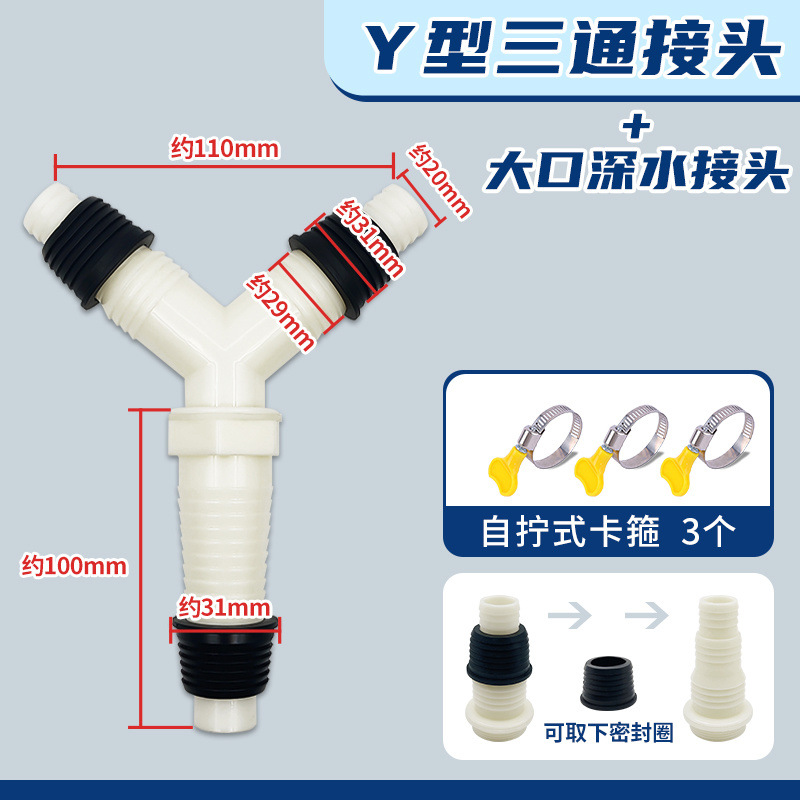 세탁기 하수구 3방향 커넥터 투인원 배수관 Y자형 분기 3방향 주방 바닥 배수구 직선 커넥터스토어 가기