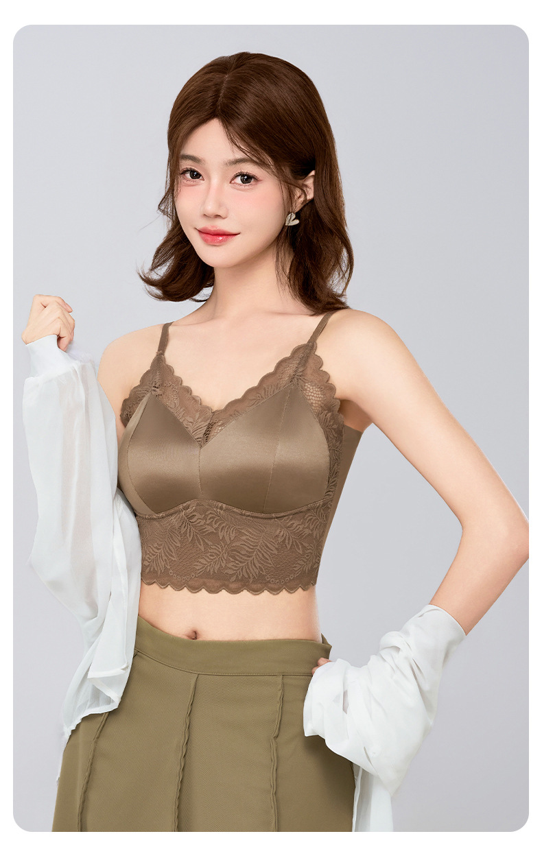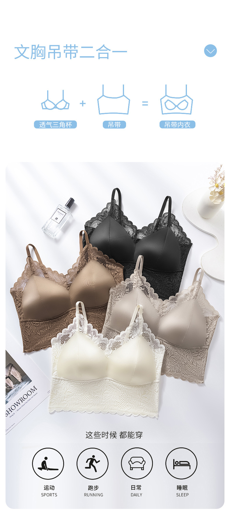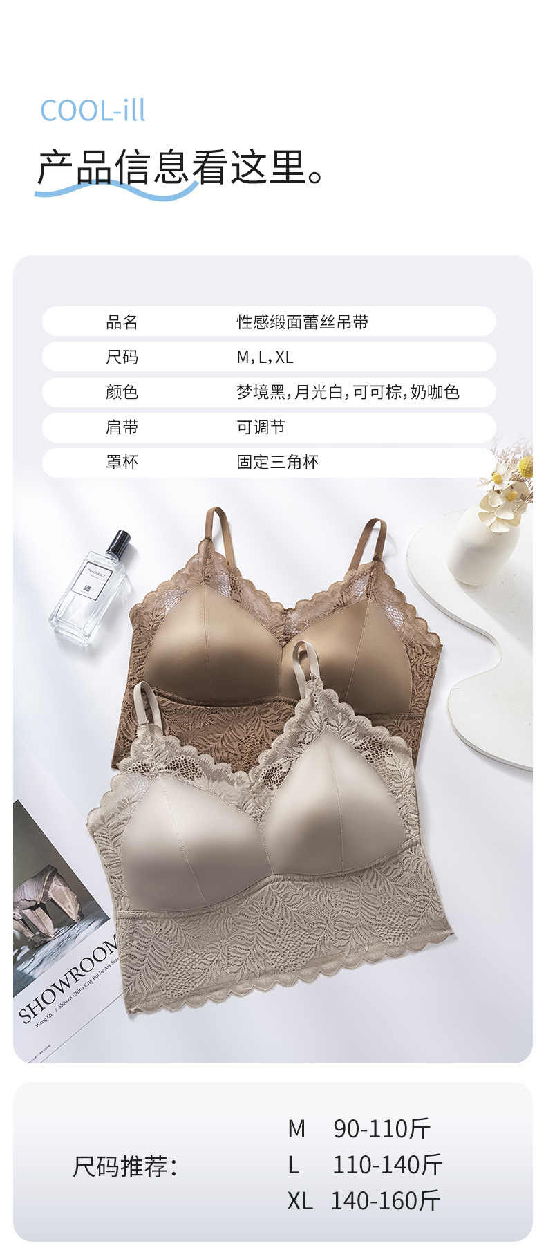 프렌치 서스펜더 섹시한 레이스 내부 고정 컵 새틴 고정 컵 통기성 누드 가슴 미용 작은 캐미솔 여성용스토어 가기