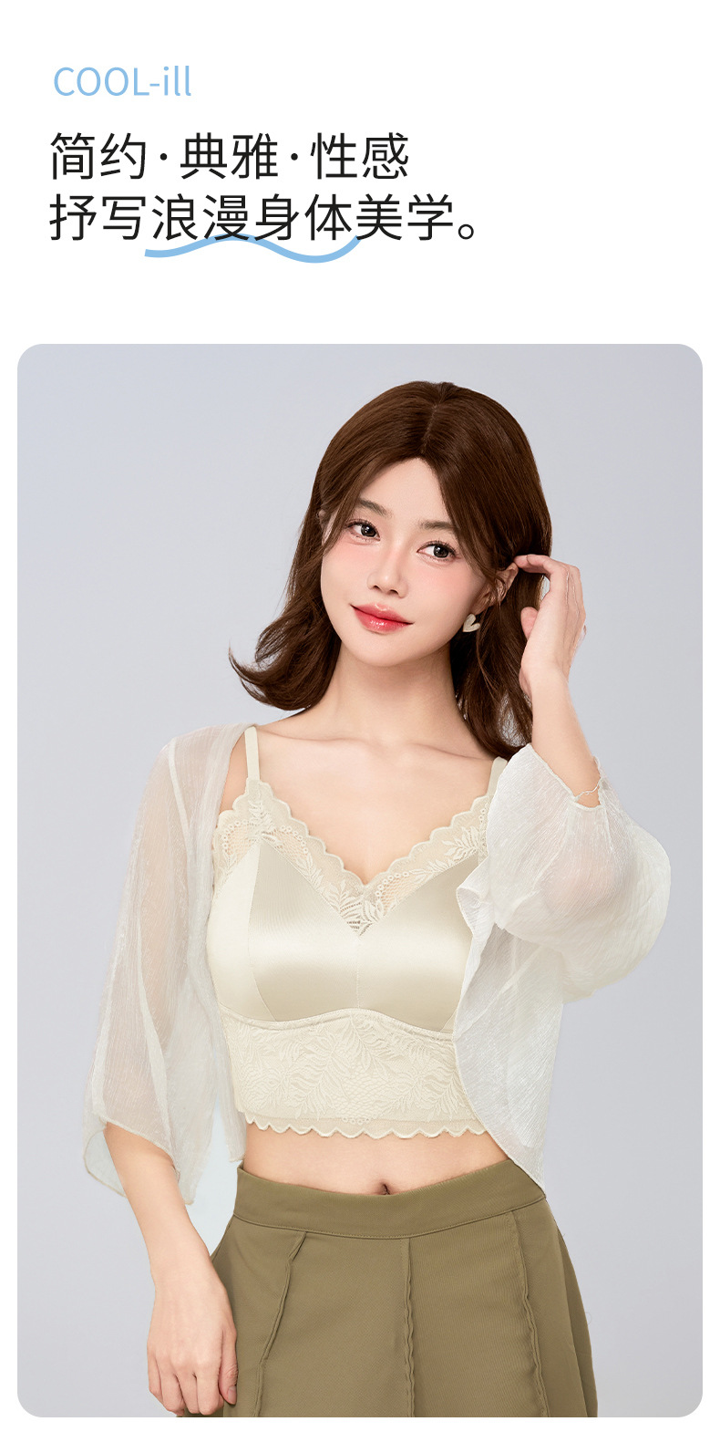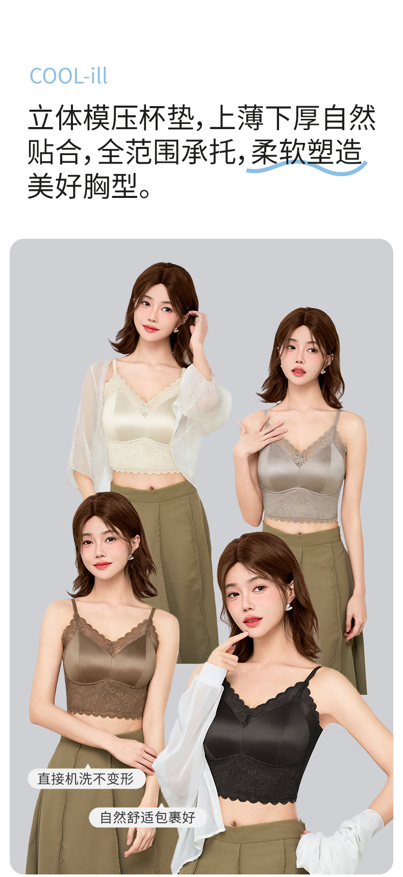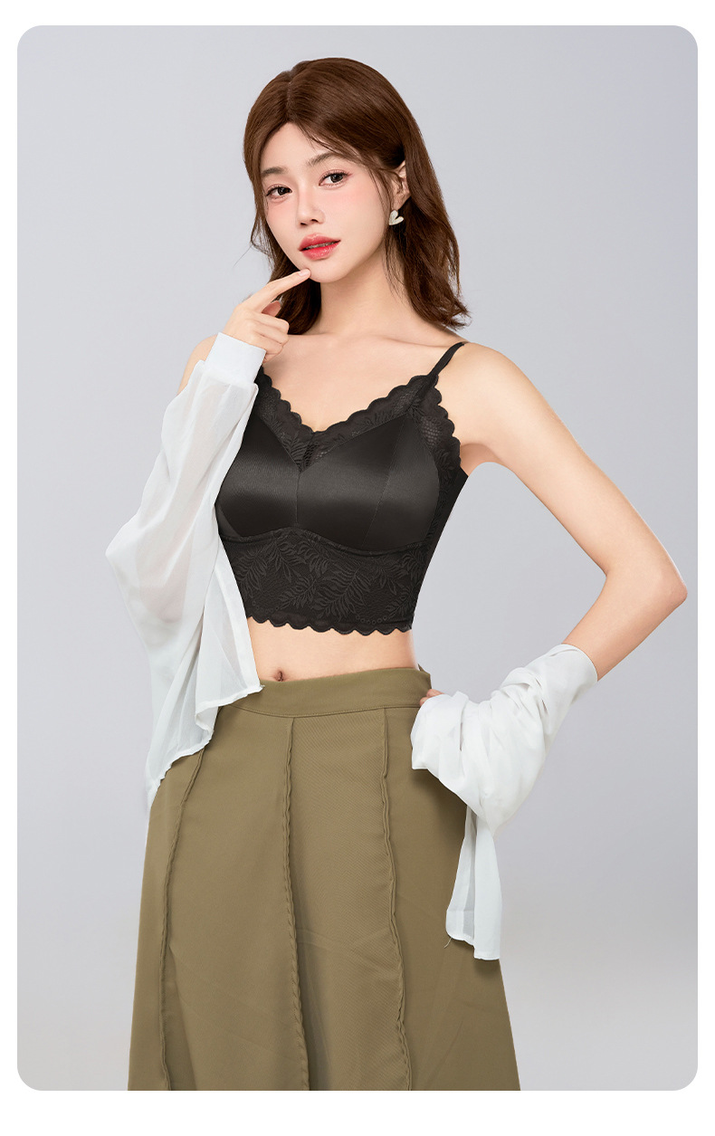프렌치 서스펜더 섹시한 레이스 내부 고정 컵 새틴 고정 컵 통기성 누드 가슴 미용 작은 캐미솔 여성용스토어 가기