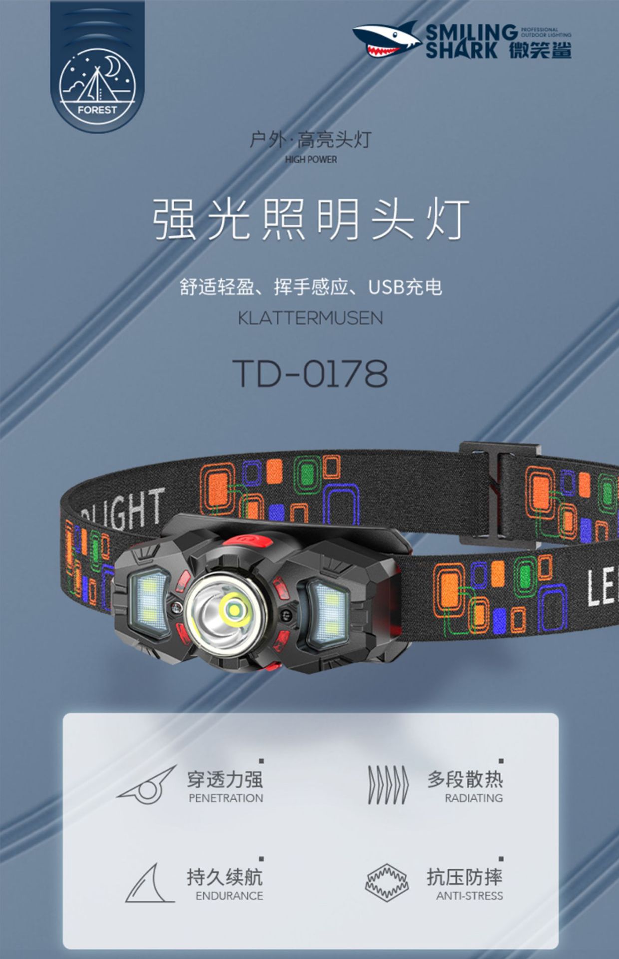강한 빛으로 충전되는 헤드라이트, 매우 밝은 헤드 장착형 낚시 실외 조명, 매우 긴 배터리 수명, 초경량 유도 야간 낚시 조명 LED스토어 가기
