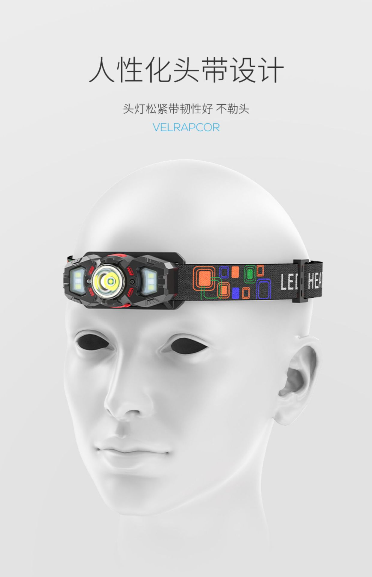 강한 빛으로 충전되는 헤드라이트, 매우 밝은 헤드 장착형 낚시 실외 조명, 매우 긴 배터리 수명, 초경량 유도 야간 낚시 조명 LED
