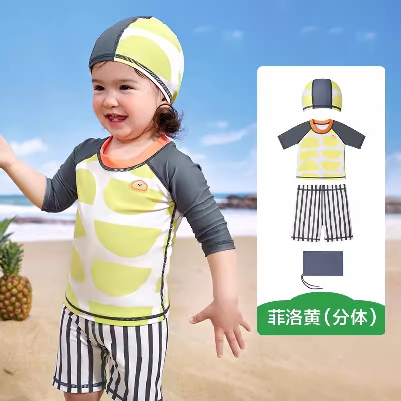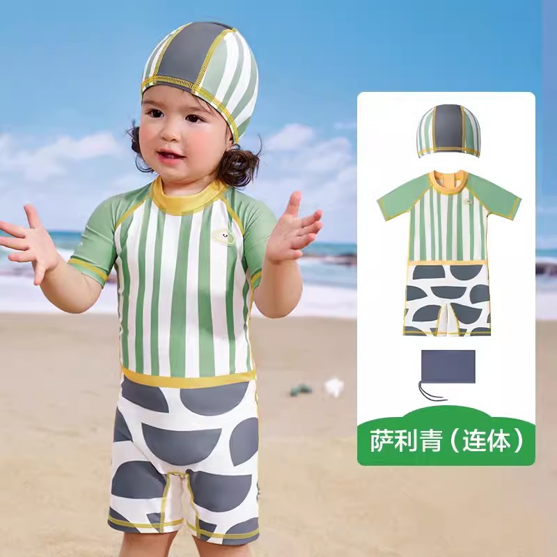 KK 트리 어린이 수영복 소년과 소녀 원사 자외선 차단제 및 내염소성 수영복 스플릿 원피스 베이비 수영복