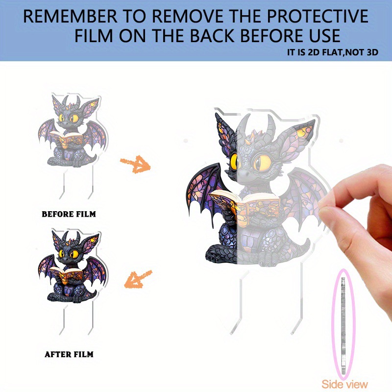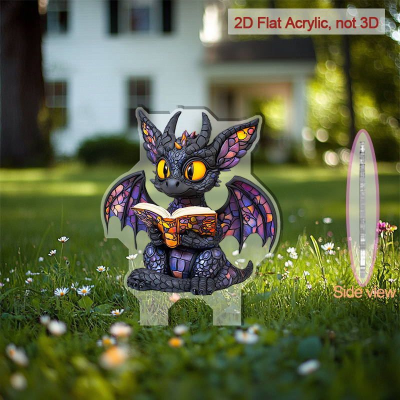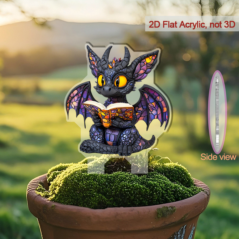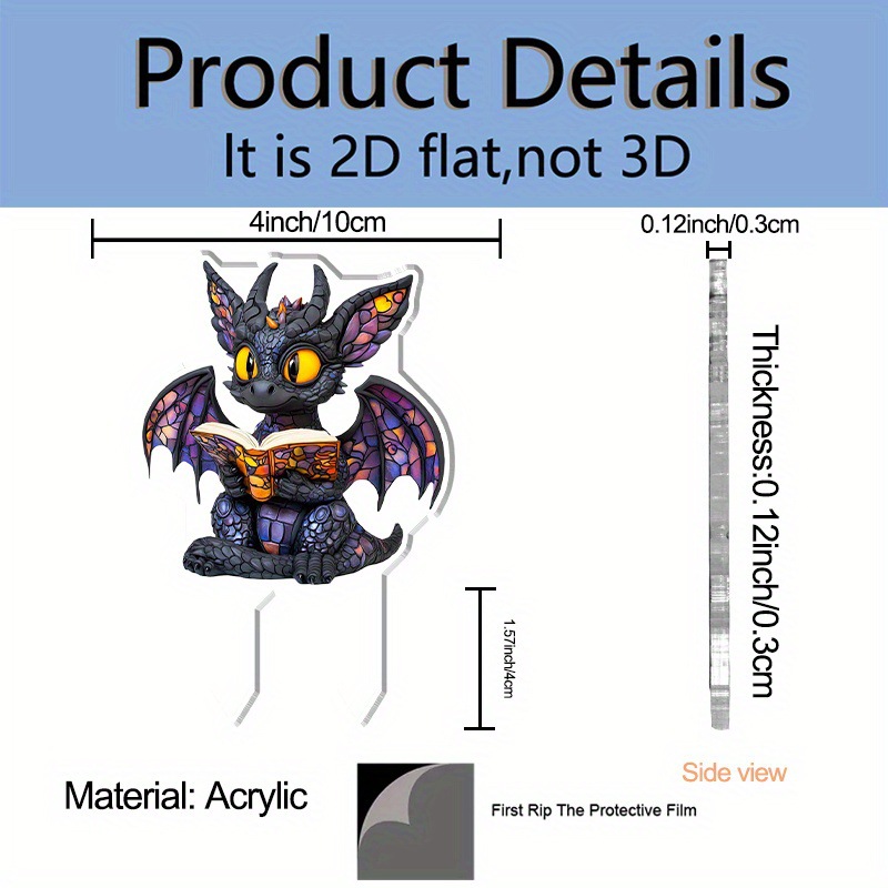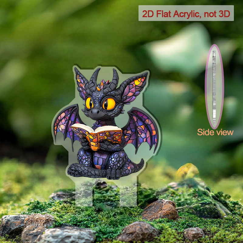 2D 평면, 1PC 판타지 드래곤 독서 책 아크릴 바닥 삽입-밝은 보라색 오렌지 야외 장식, 내후성