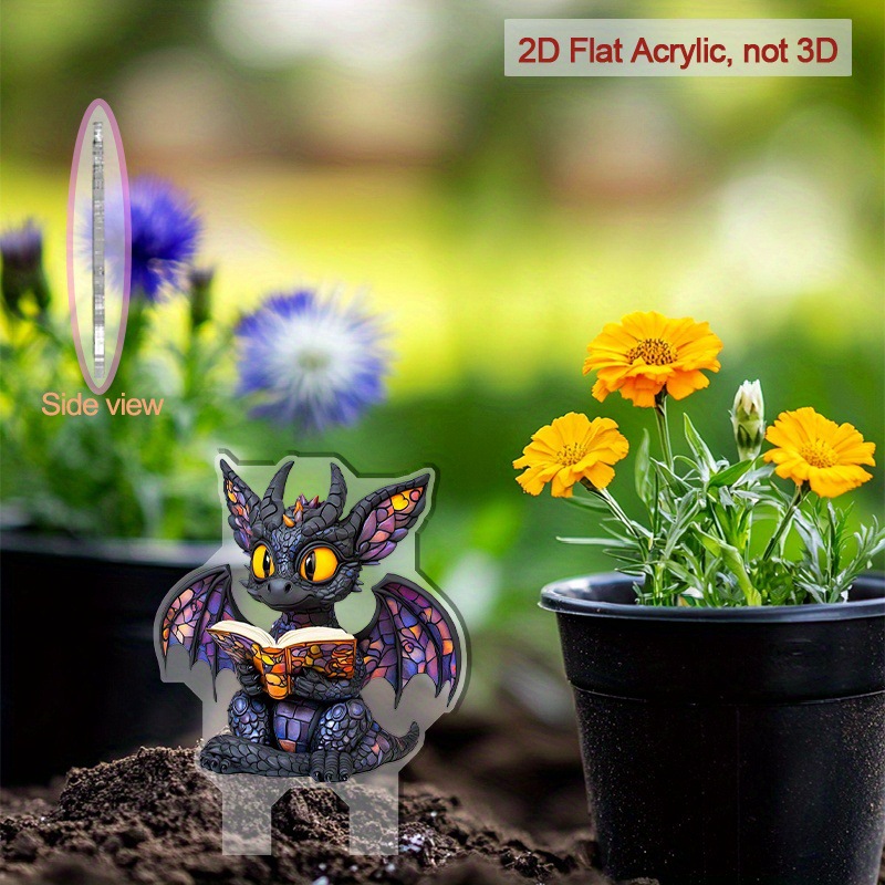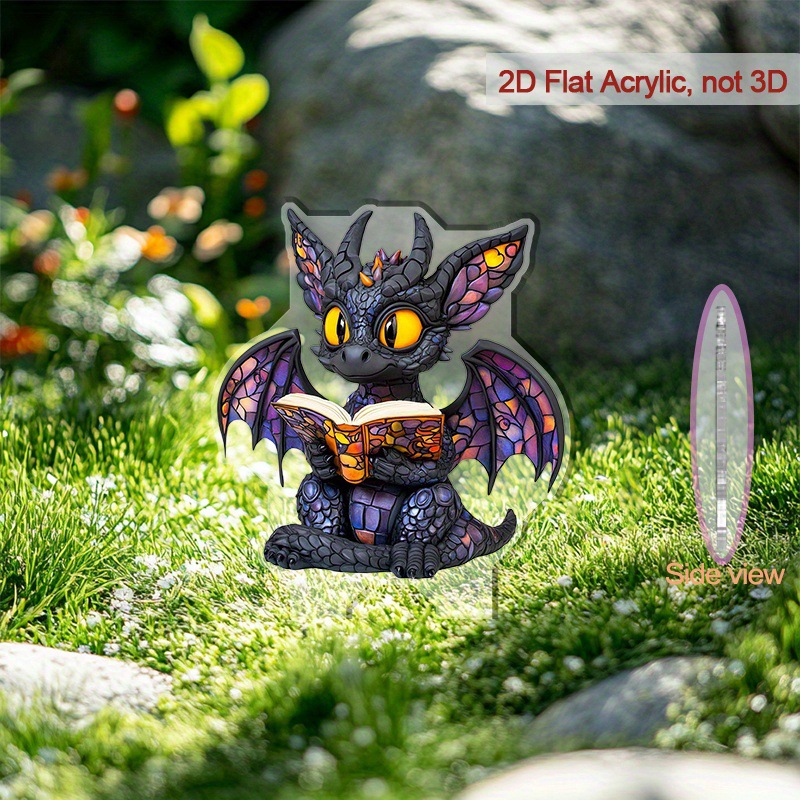 2D 평면, 1PC 판타지 드래곤 독서 책 아크릴 바닥 삽입-밝은 보라색 오렌지 야외 장식, 내후성스토어 가기