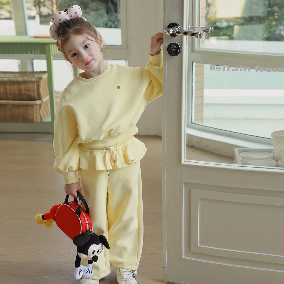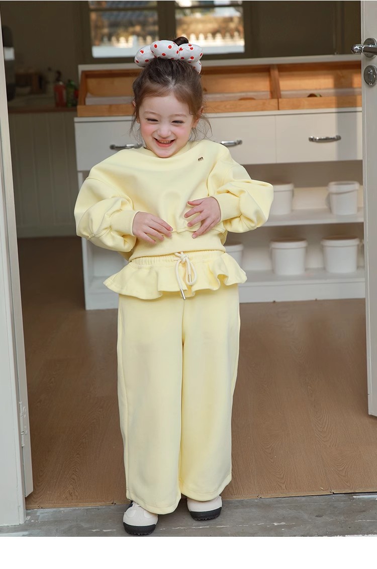 여아 스웨트 셔츠 세트 봄, 가을 2025 새로운 어린이 유행 인터넷 연예인 프릴 스웨트 팬츠 한국 투피스 세트스토어 가기