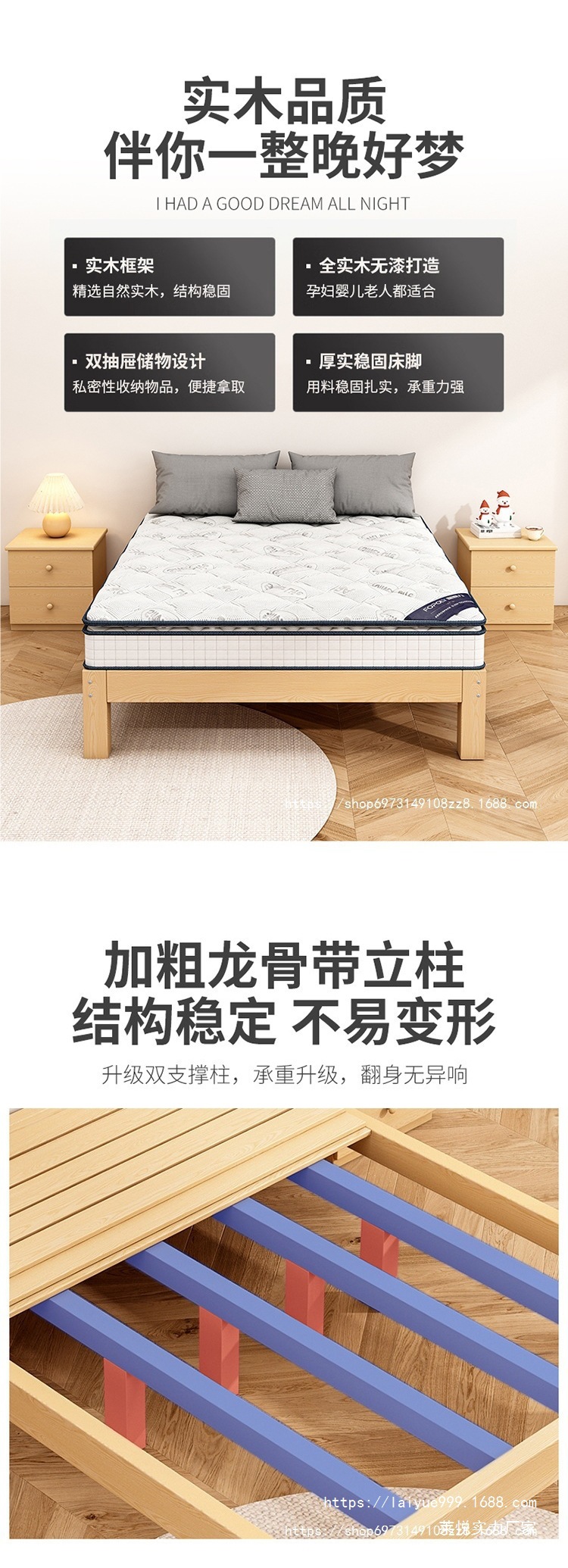 • 통기성이 뛰어난 30CM 원목 침대 + 서랍 + 매트리스, 경제적이고 저렴한