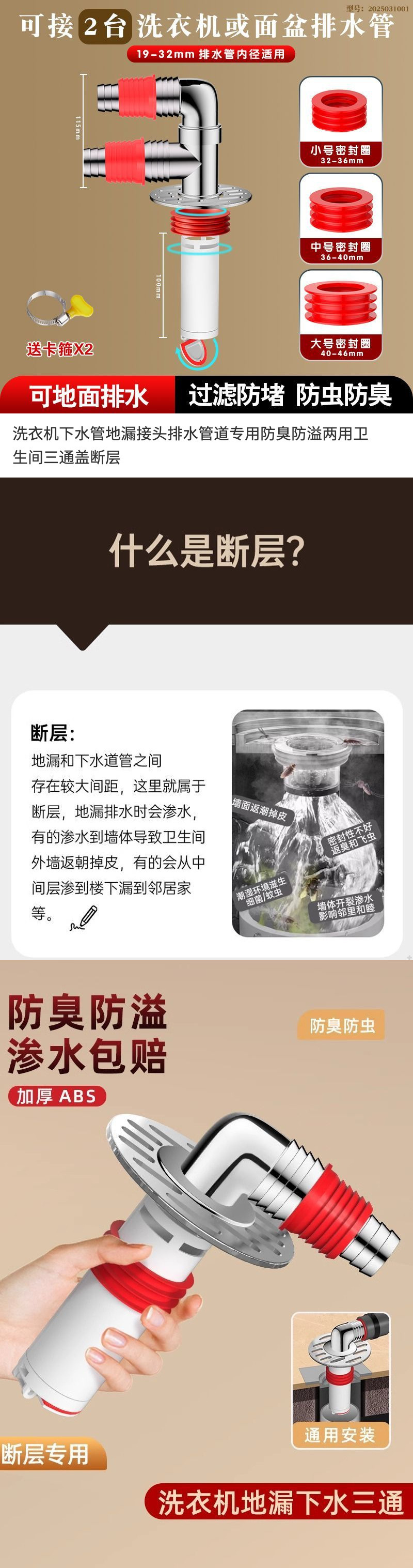 • 지하 배수 연장을 위한 단층 [세탁기 2대 유연한 연결] + 바닥 배수구 커버