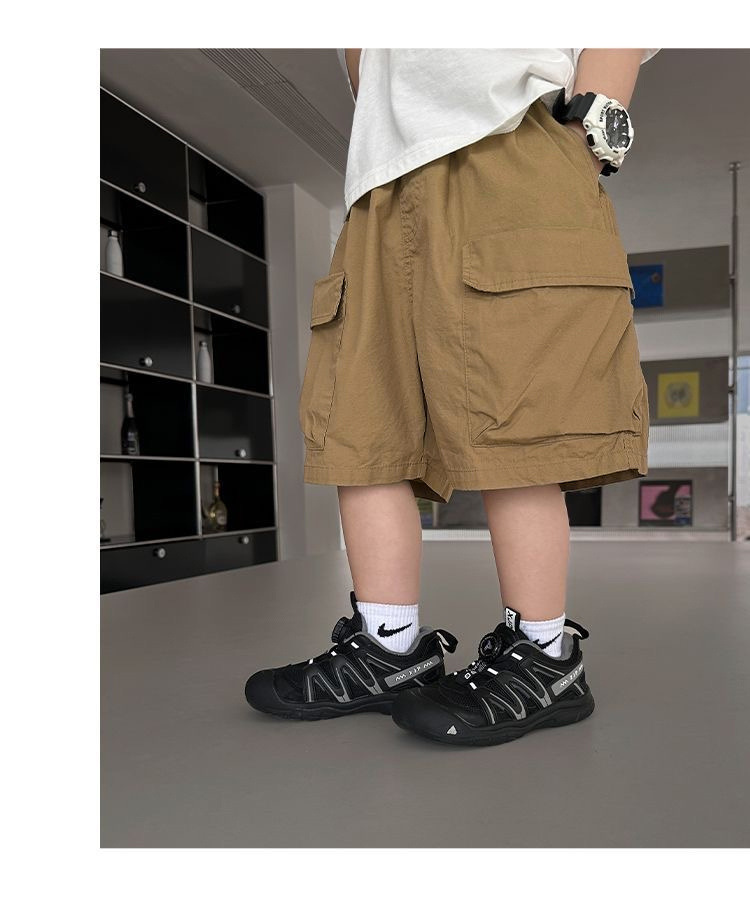 소년 여름 얇은 작업복 2024 새로운 어린이 다목적 캐주얼 중간 바지 아기 반바지 여름 5 점 바지