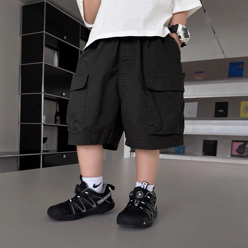 소년 여름 얇은 작업복 2024 새로운 어린이 다목적 캐주얼 중간 바지 아기 반바지 여름 5 점 바지스토어 가기