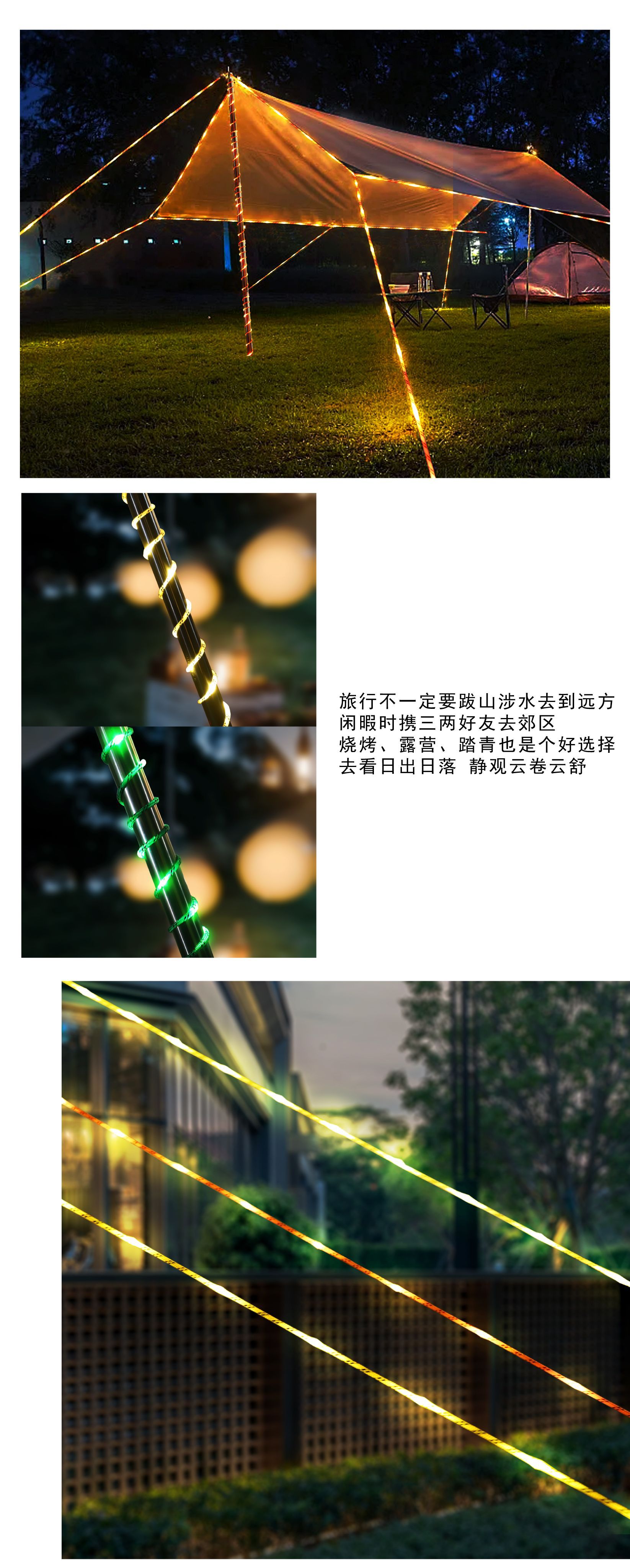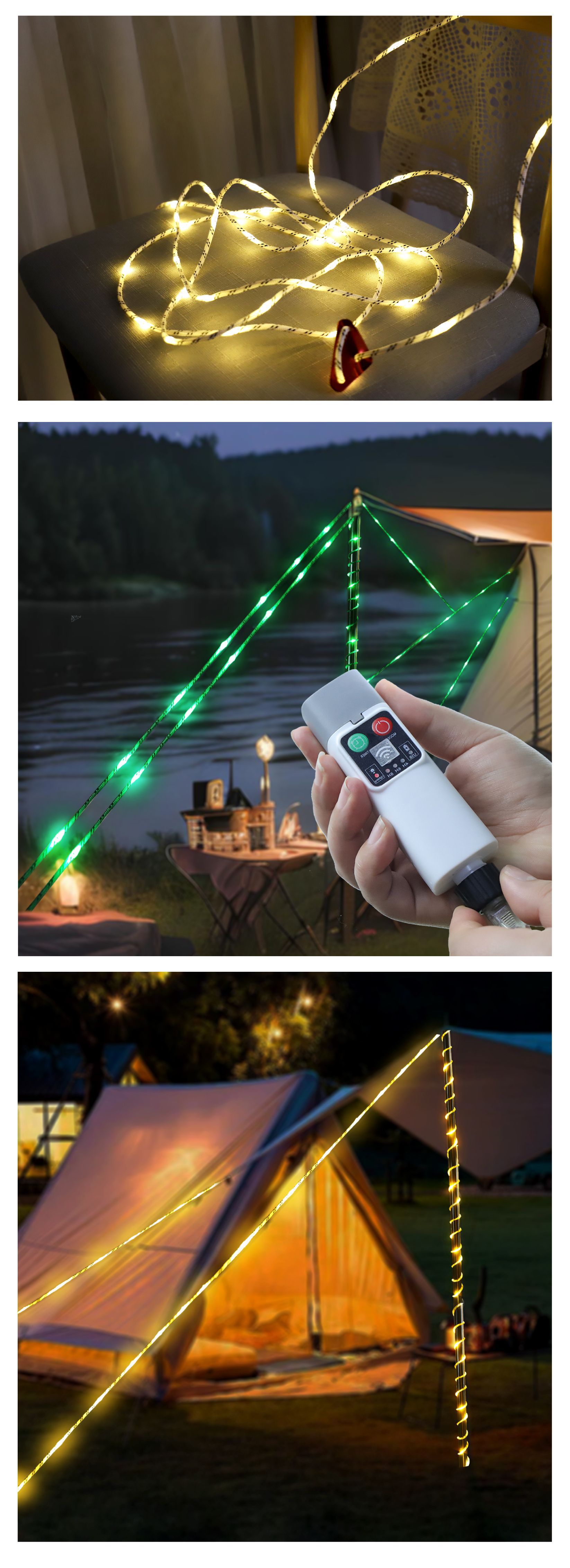 캠핑 스타일 로프 라이트, 발광 방풍 로프, 원격 제어, 충전식 야간 경고, 걸림 방지 로프, 텐트 캠프 로프스토어 가기