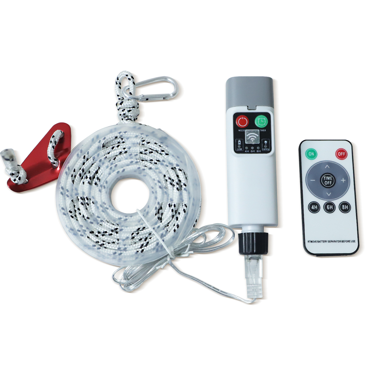 • 흰색 윈드 로프 조명 + 충전 컨트롤러 + 리모콘 - 5.5m 조명