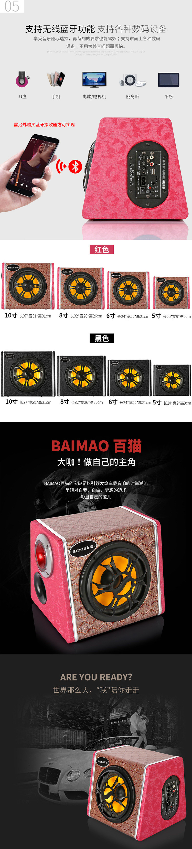 고출력 자동차 서브우퍼 12V24V 자동차 블루투스 오디오 트럭 5/6/8/ 10inch 사다리꼴 홈스토어 가기