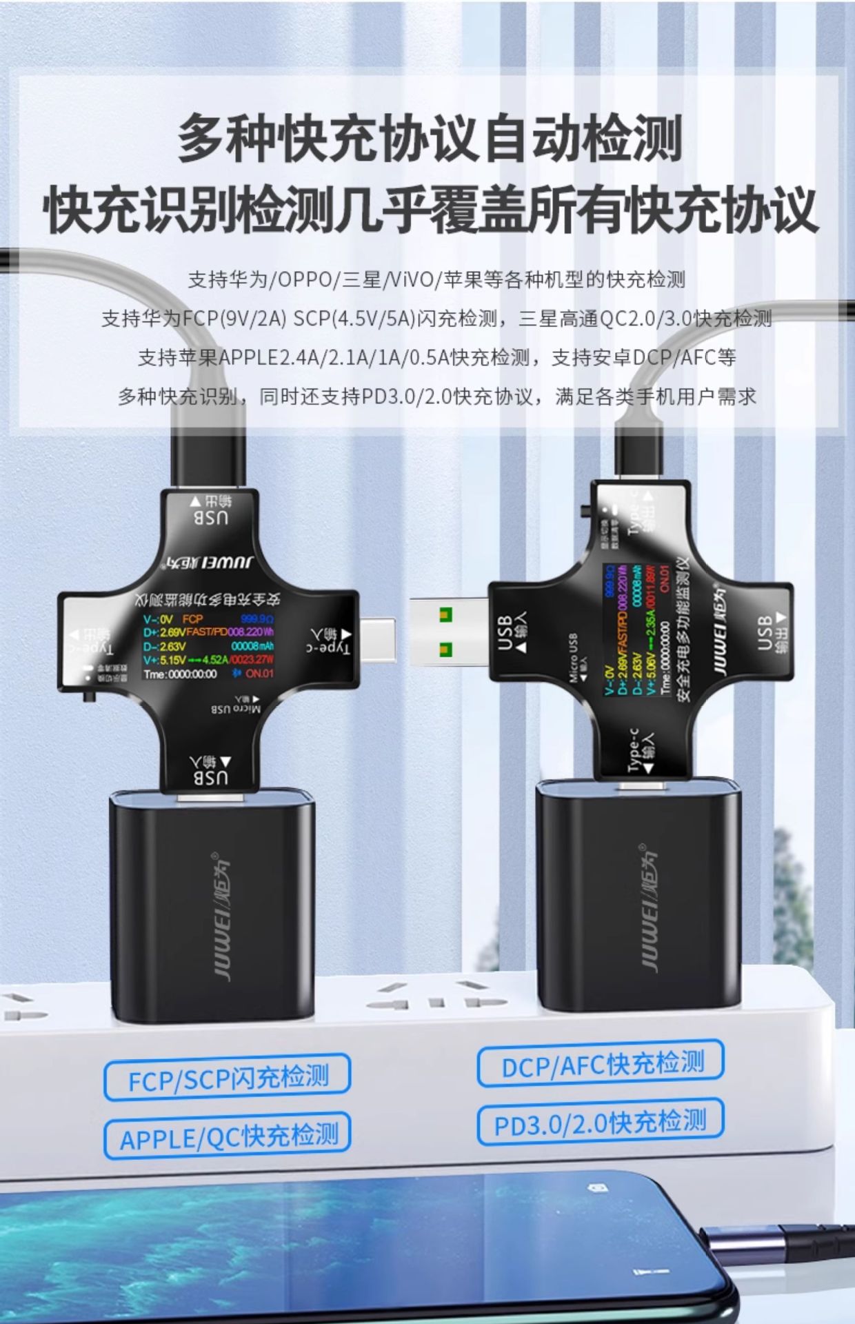 Juwei Type-C PD 다기능 테스터 디지털 디스플레이 전압계 전류계 USB 충전 감지기 측정기