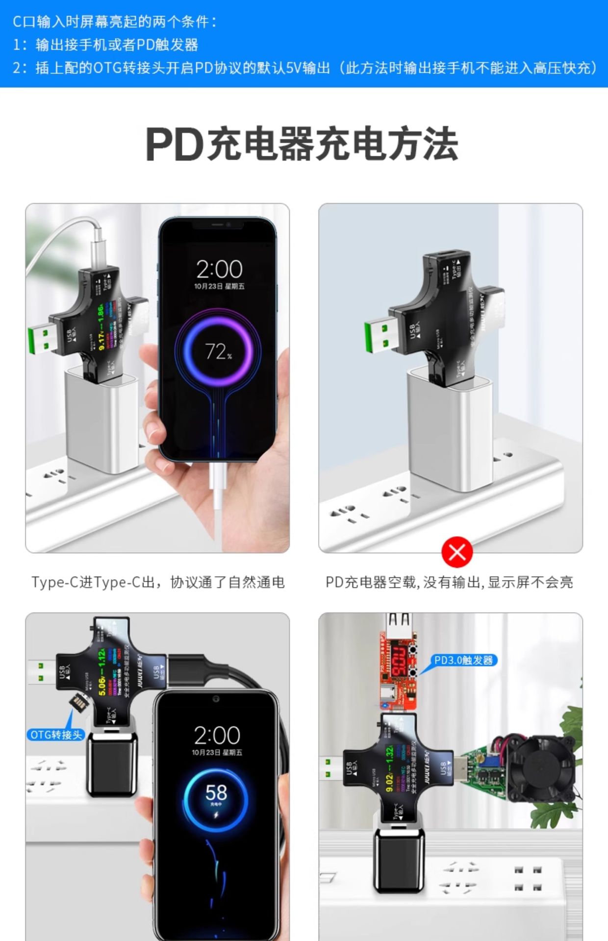 • (블루투스 없음) 듀얼 인터페이스 Type-c USB 감지기 30V6. 지원 6.