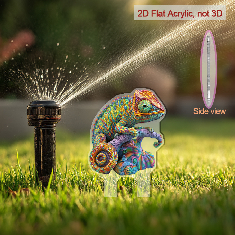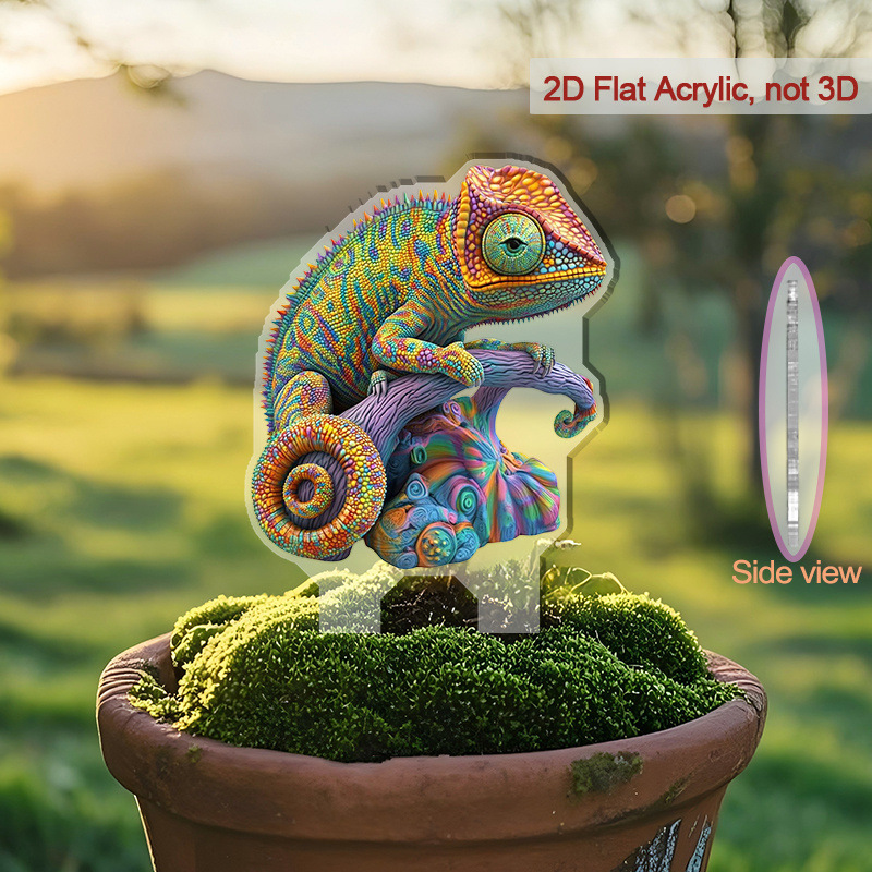 2D 평면, 1개 활기찬 카멜레온 아크릴 바닥 삽입 장식 - 전원 필요 없음, 전통 판타지 테마