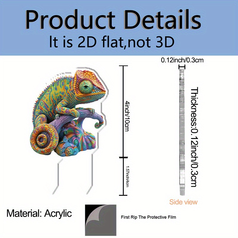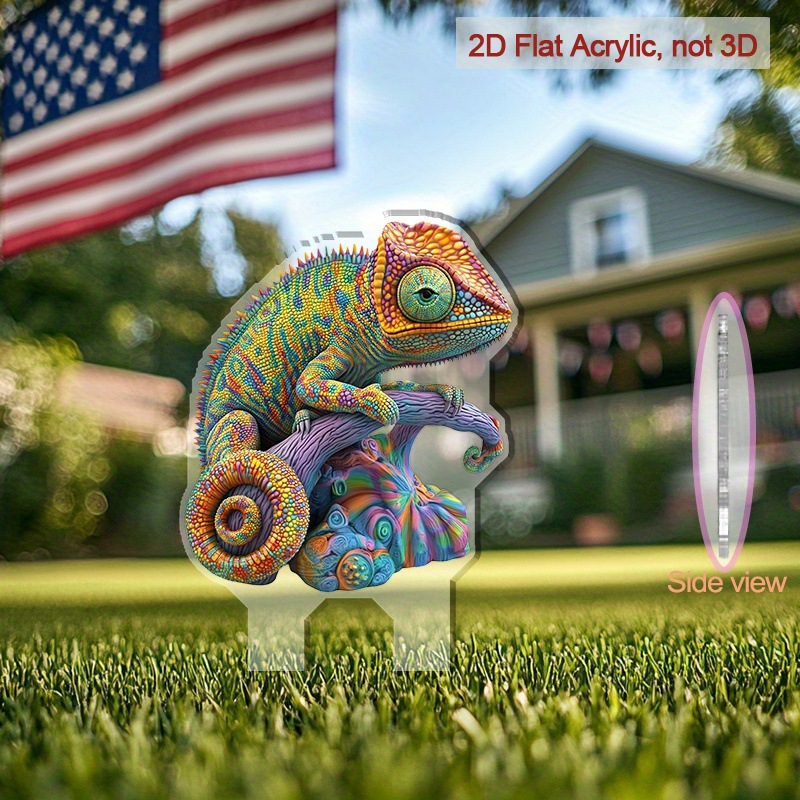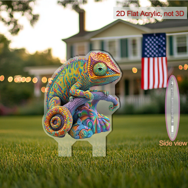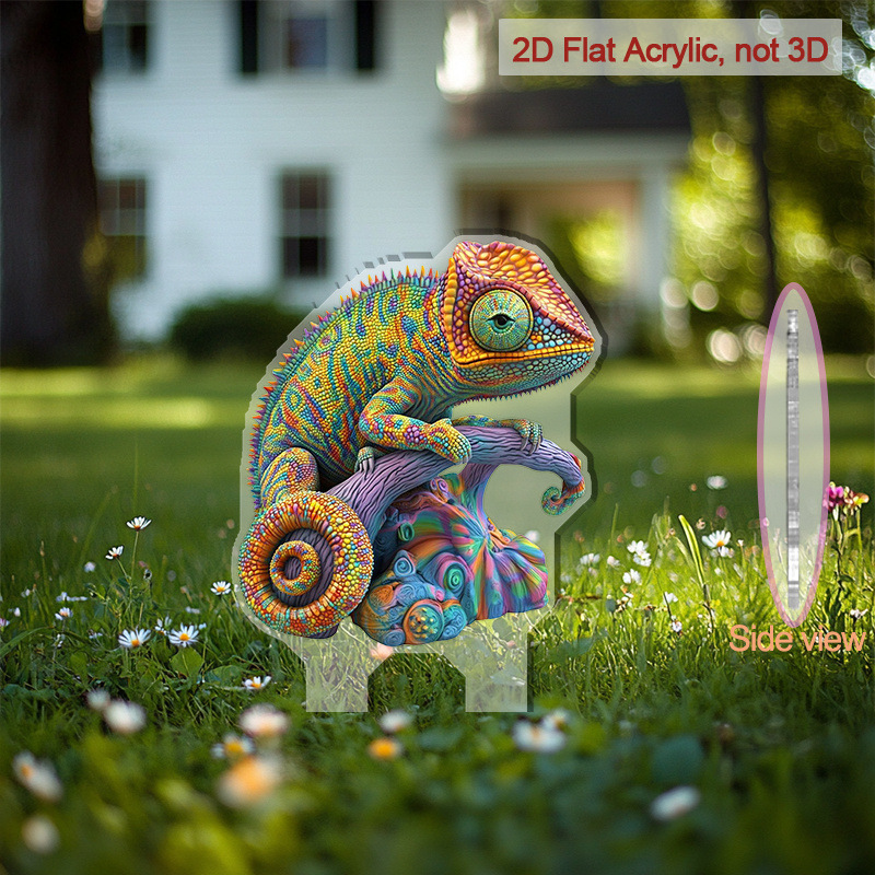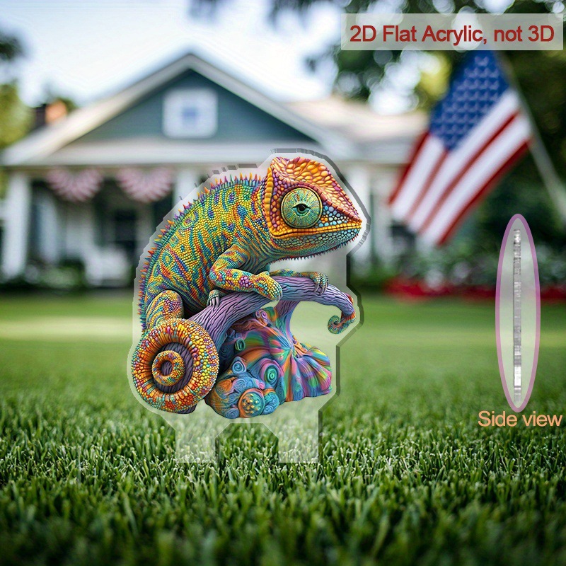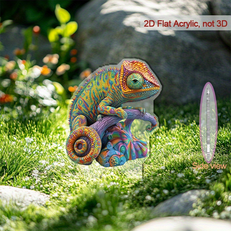 2D 평면, 1개 활기찬 카멜레온 아크릴 바닥 삽입 장식 - 전원 필요 없음, 전통 판타지 테마스토어 가기