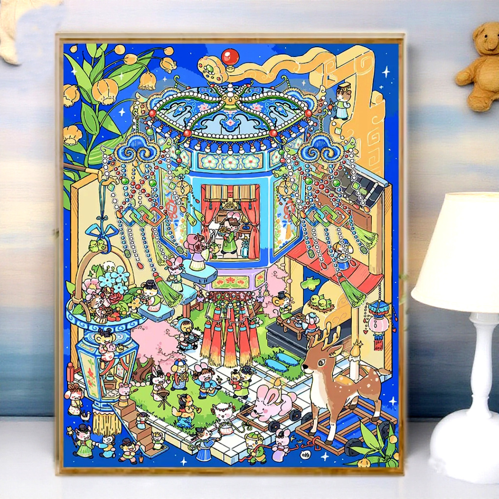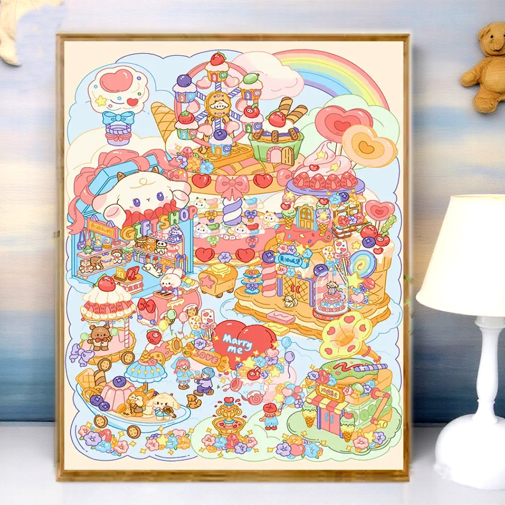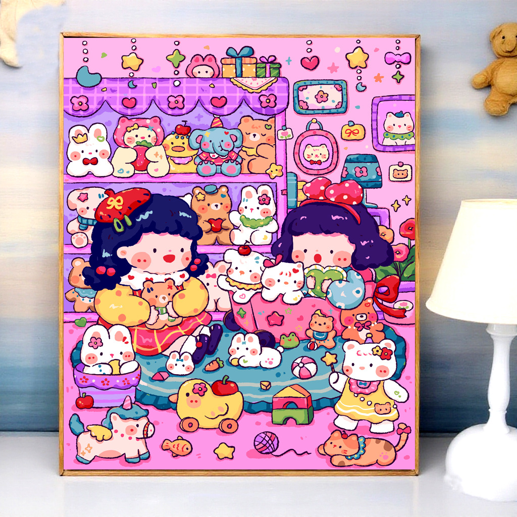 트레저 베이 같은 스타일 diy 디지털 유화 인형 집 놀이 공원 제안 아크릴 거실 입구 장식 그림 교수형 그림스토어 가기