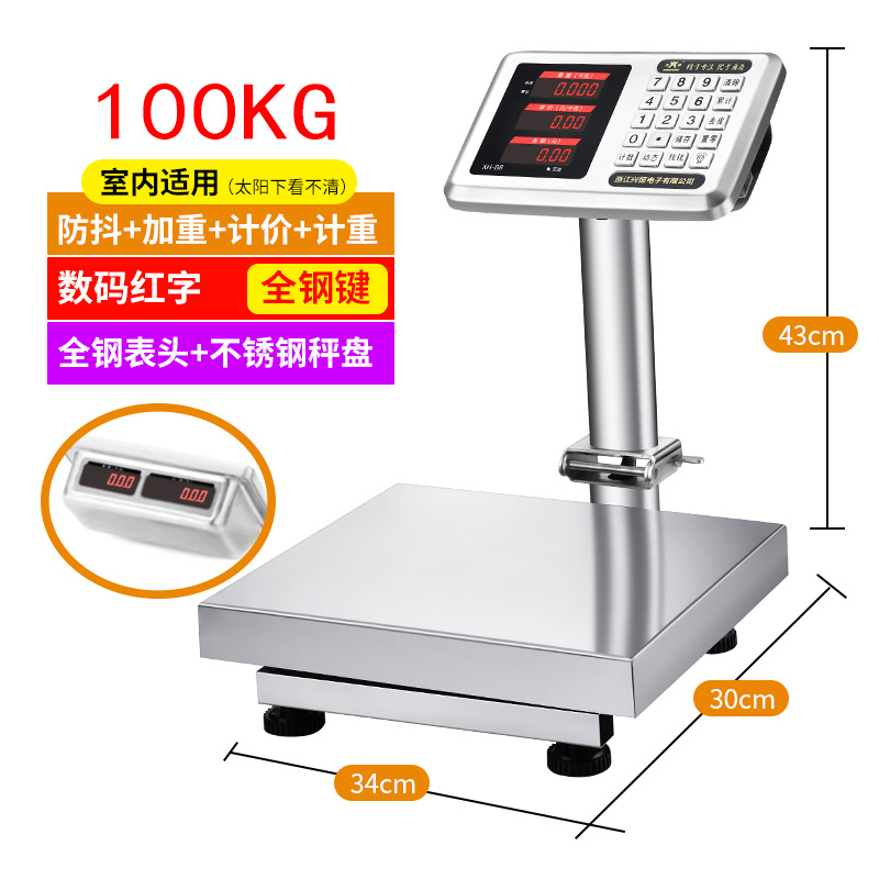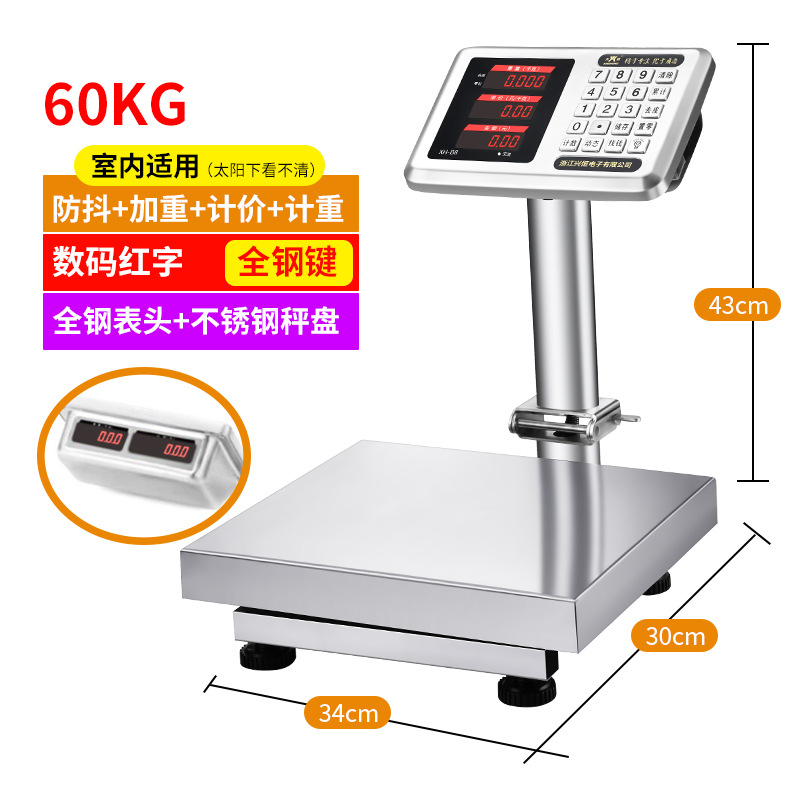 완전 스테인레스 스틸 Xingheng Yingcan 전자 저울 상업용 60KG 100kg 해산물 방수 접이식 가격 책정 저울스토어 가기