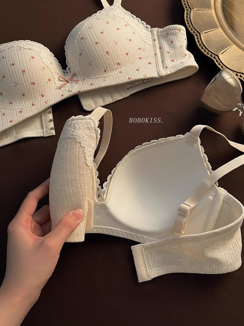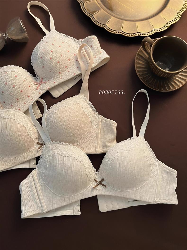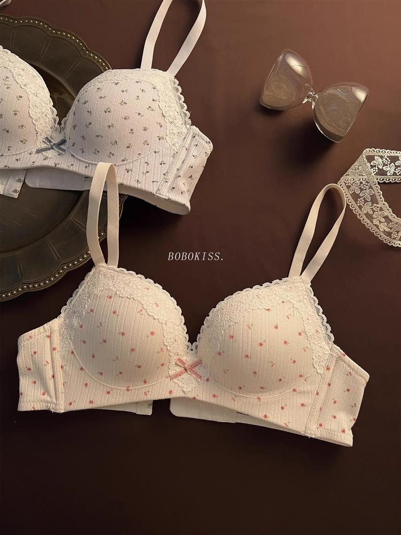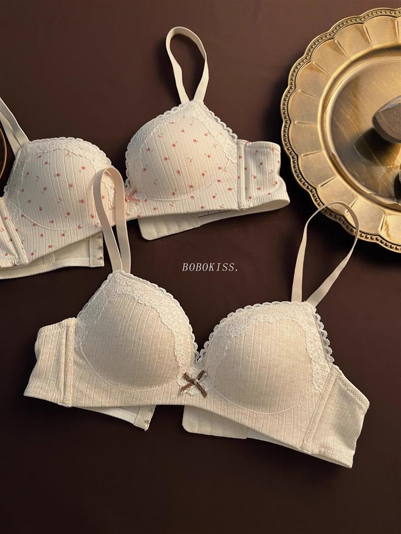 작은 가슴을 가진 여성을 위한 달콤한 여성스러운 레이스 섹시 속옷, 푸쉬업 및 확대, 와이어 프리 처짐 방지 브라, 여성용 면 브라