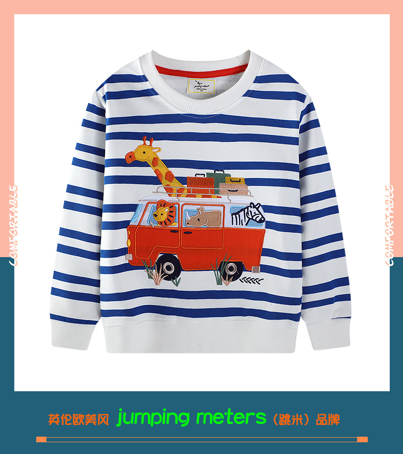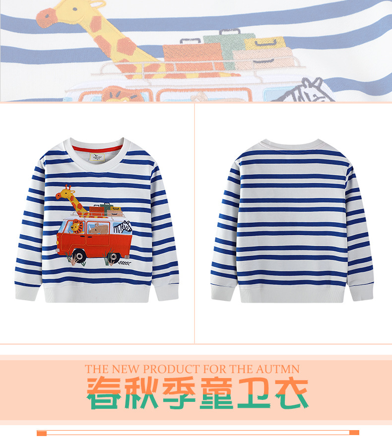 跨境货源2026年女童卫衣时尚欧美刺绣图案儿童卫衣针织棉圆领上衣