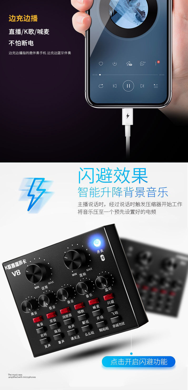 V8 라이브 사운드 카드 전용 휴대폰 음성 변경 전체 세트 노래 앵커 국민 전문 인터넷 연예인 고급 컴퓨터 마이크스토어 가기