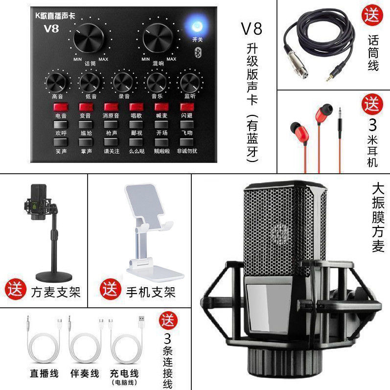 V8 라이브 사운드 카드 전용 휴대폰 음성 변경 전체 세트 노래 앵커 국민 전문 인터넷 연예인 고급 컴퓨터 마이크