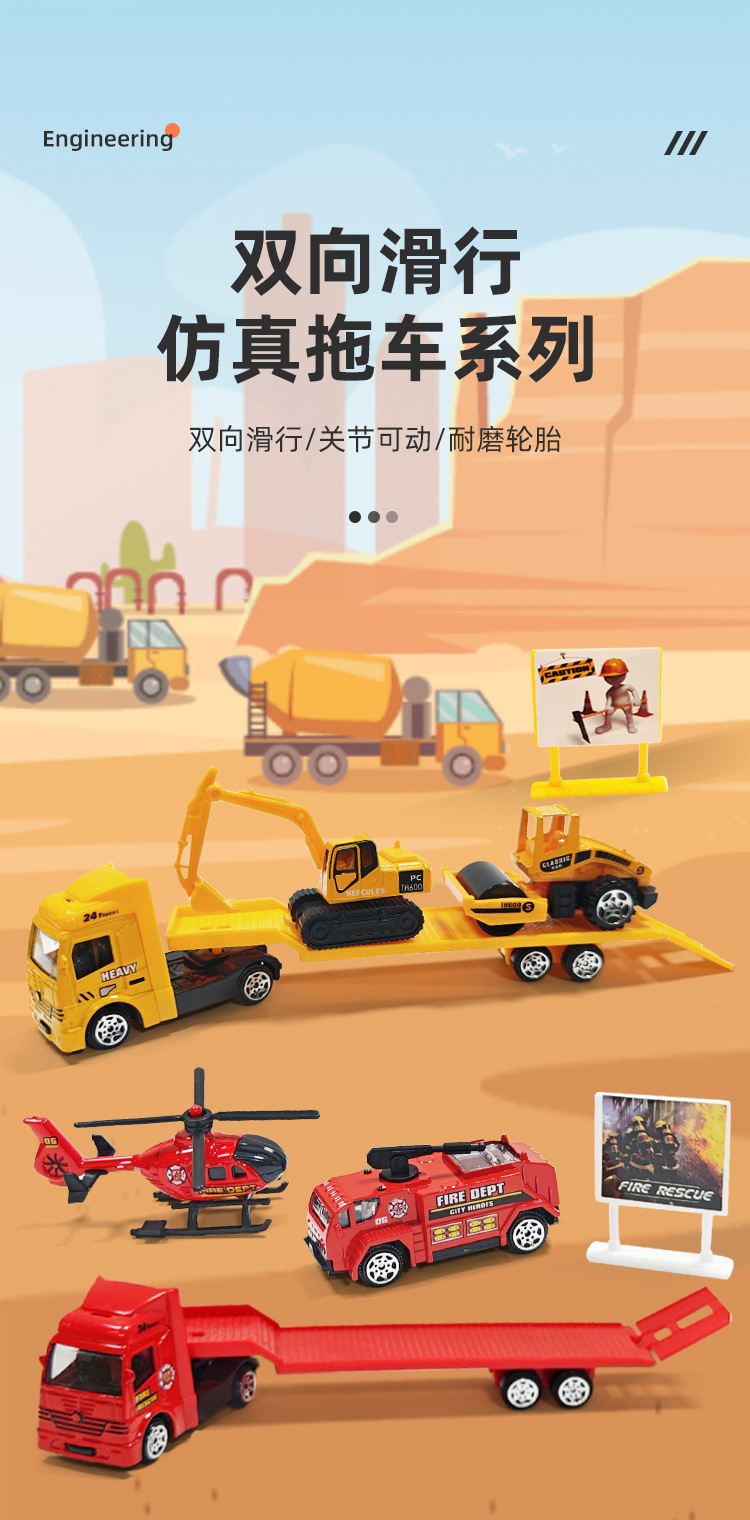 국경 간 1:64 양방향 슬라이딩 엔지니어링 차량 굴삭기 장난감 자동차 어린이 교육 부모-자식 대화 형 장난감 세트