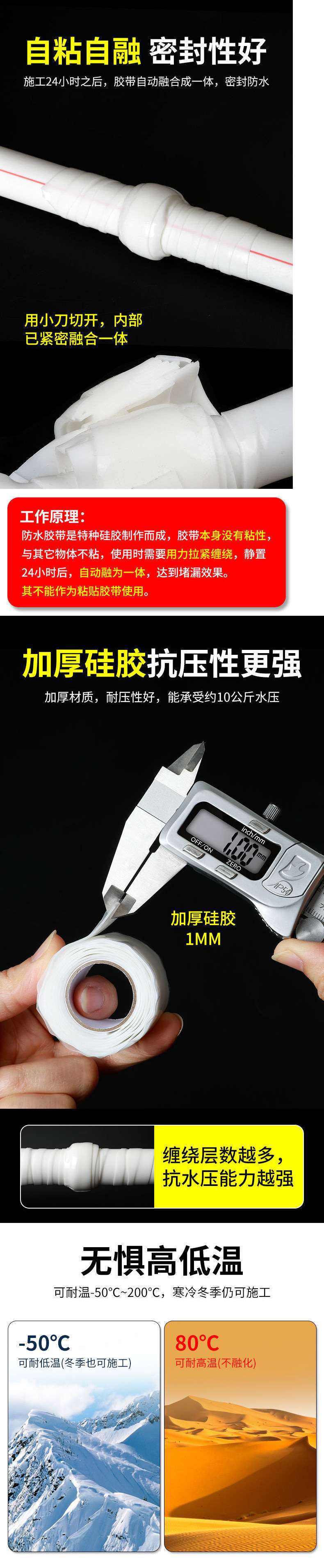 강력한 누수방지 테이프, 수도관 누수방지, 중단되지 않는 누수방지, 압력방지, 접합부수리, 파이프구멍수리 유물스토어 가기