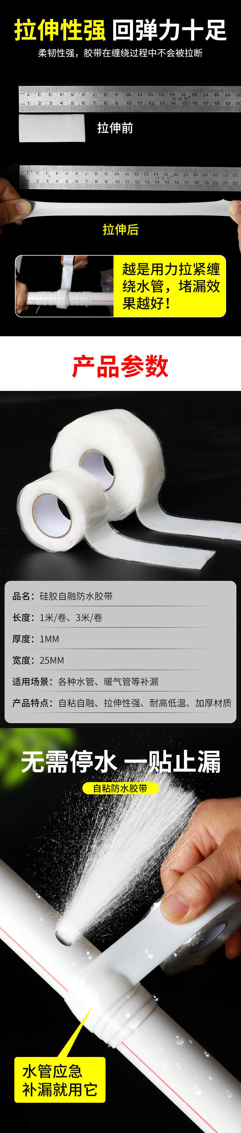 • 흰색 3m 두꺼운 1.0mm - 수도관 누수 막기용 특수 강력 테이프 2.5cm 폭