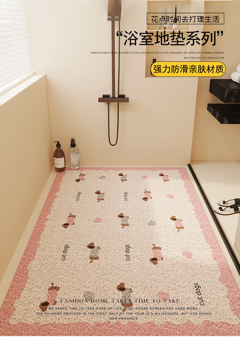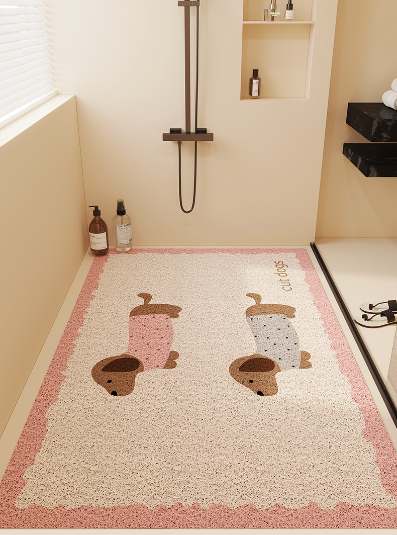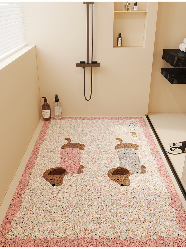 • 핑크 강아지 목욕 실크 후프 욕실 매트