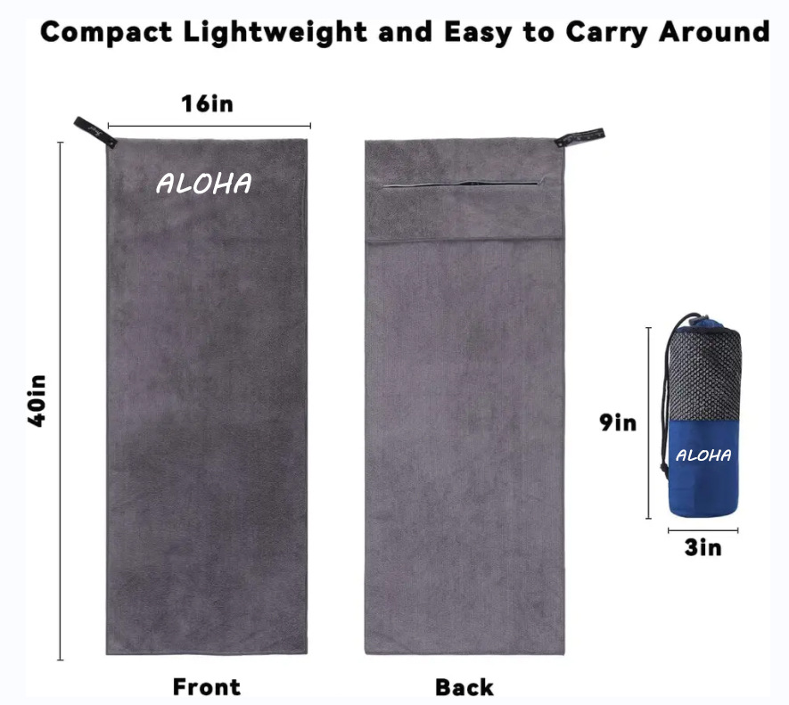지퍼 포켓이 있는 도매 피트니스 타월 체육관 벤치용 극세사 땀 닦는 타월 흡수성 부드러운 타월