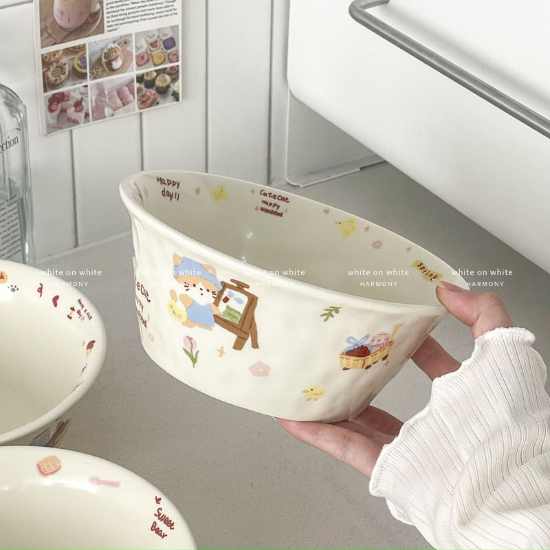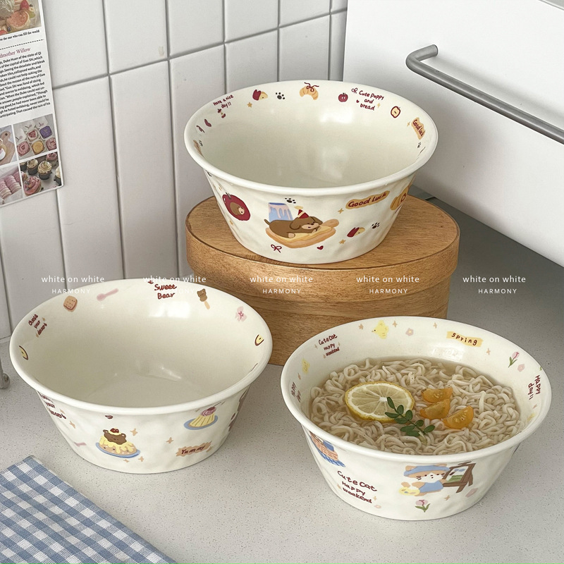 한국식 라면그릇, 대용량 전자레인지용 국그릇, 대형 가정용 고급 도자기 과일샐러드그릇, 밥그릇스토어 가기