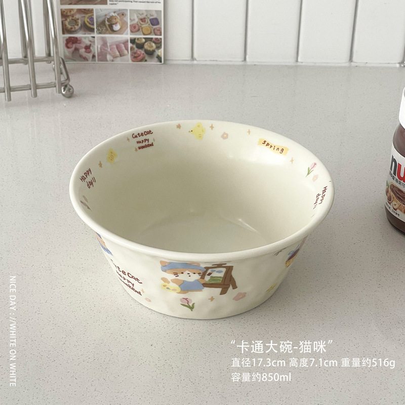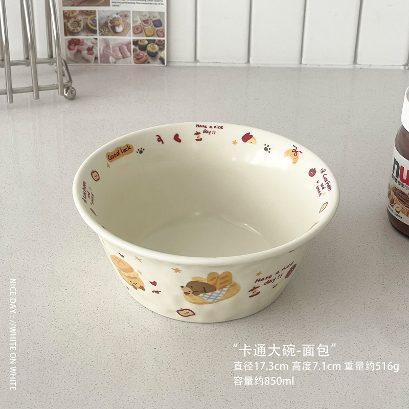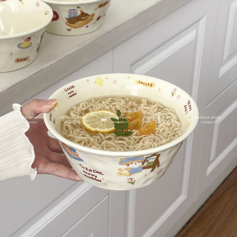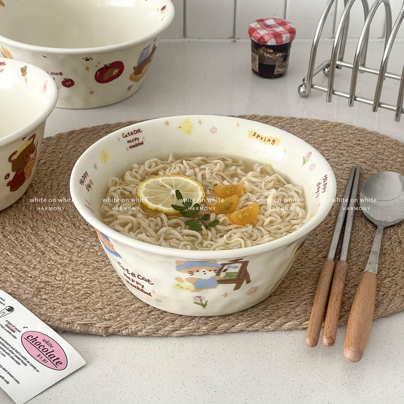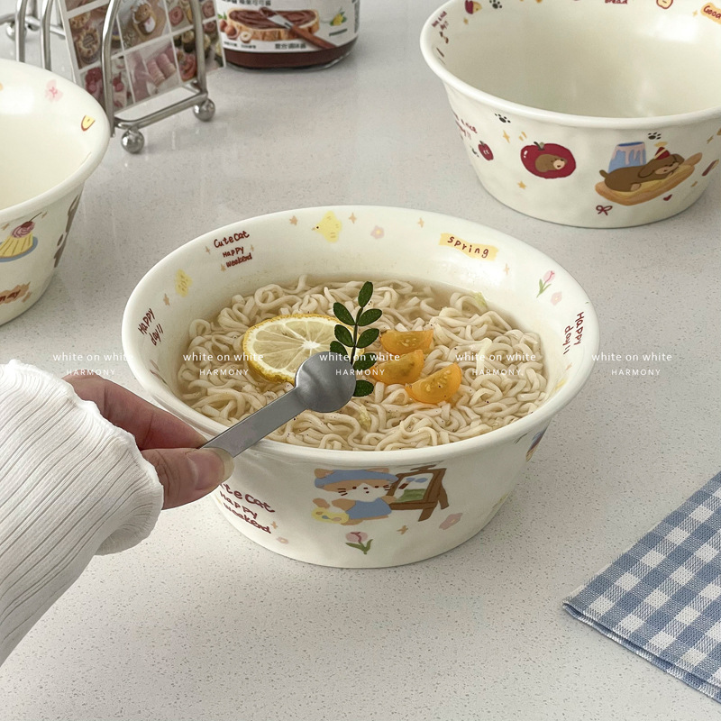 한국식 라면그릇, 대용량 전자레인지용 국그릇, 대형 가정용 고급 도자기 과일샐러드그릇, 밥그릇