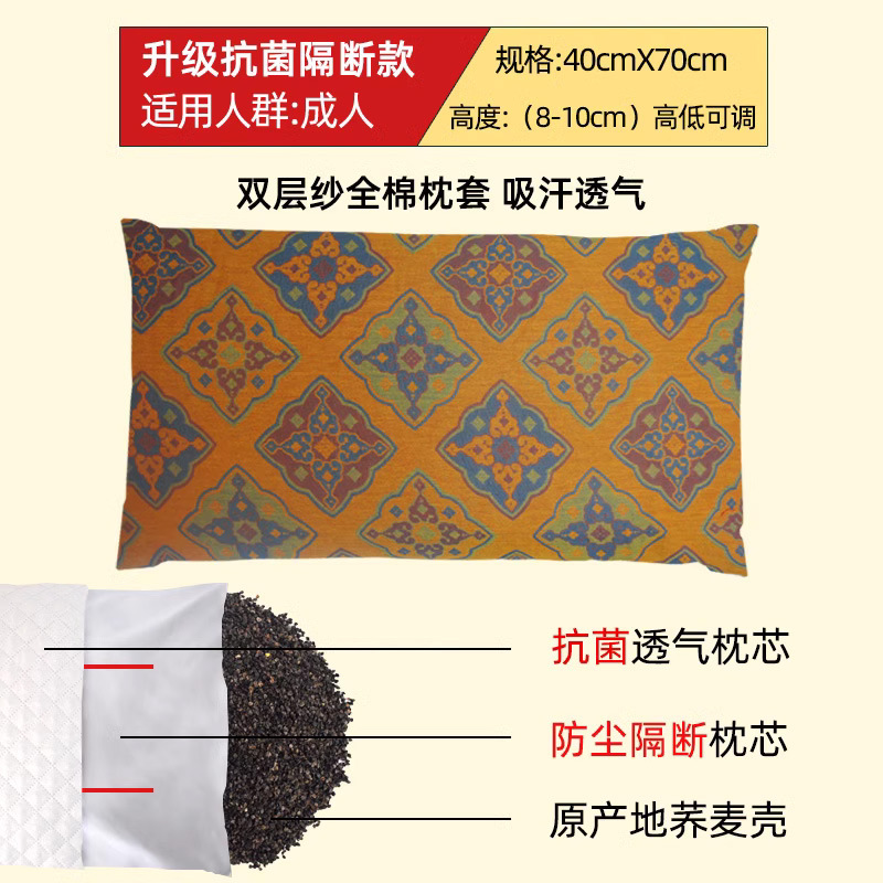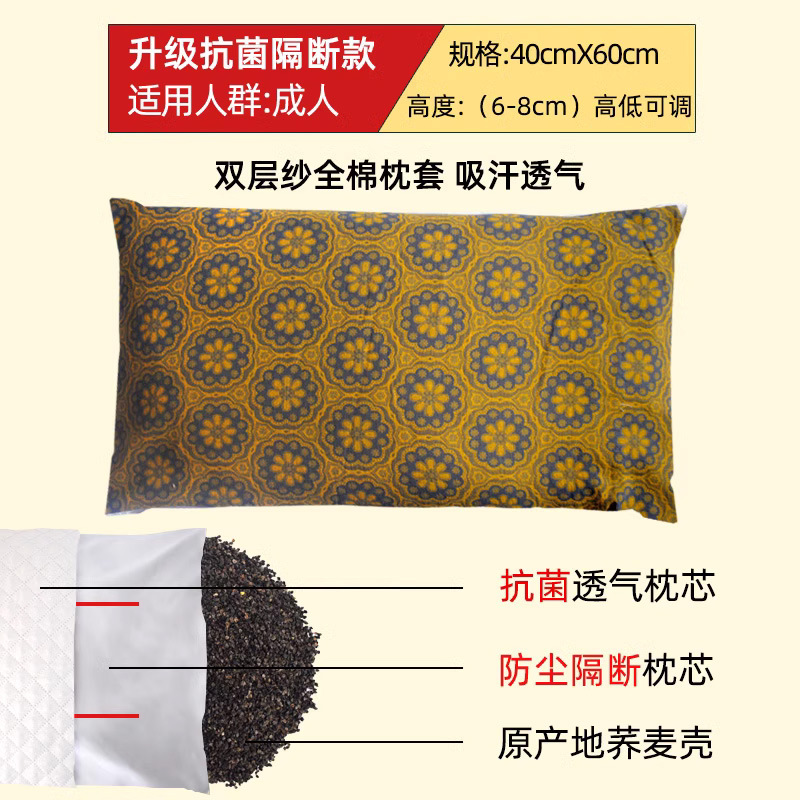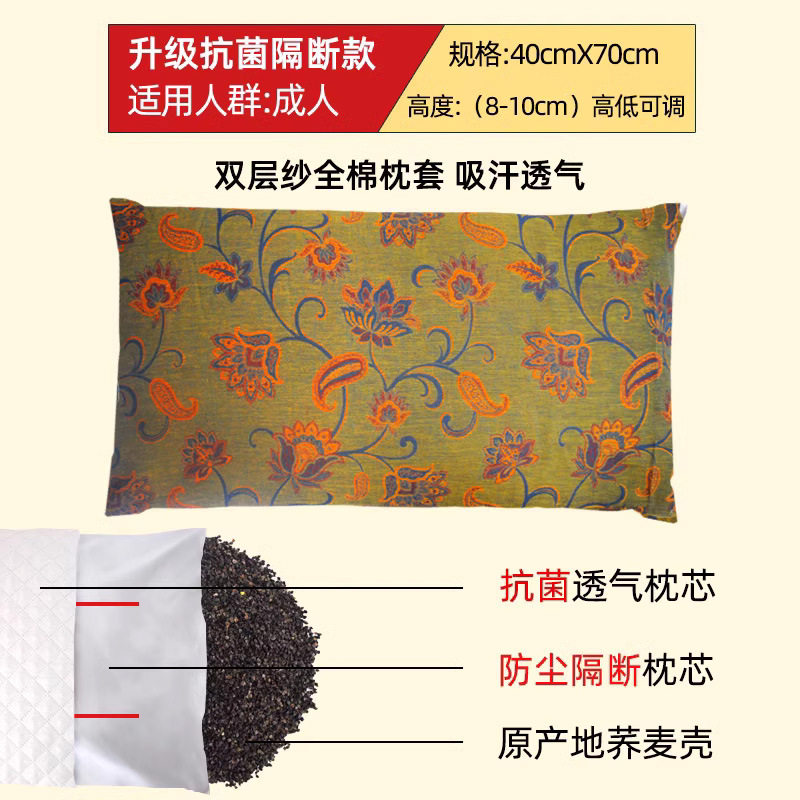• 중형 더블 베개 항균 메밀 베개 + 더블 레이어 거즈 베개 커버 연꽃