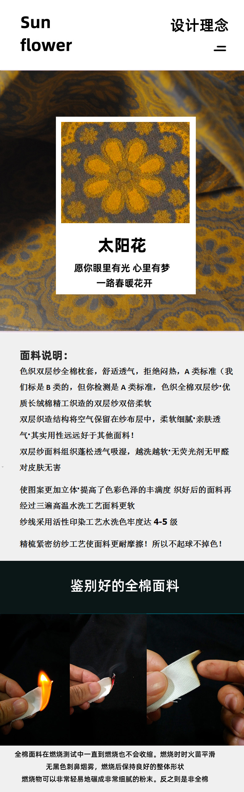 • 대형 더블 레이어 항균 메밀 베개 + 더블 레이어 거즈 베개 커버 해바라기