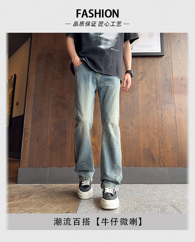 디컨스트럭티드 스플라이스 워크진 아메리칸 레트로 블루 바이브 채플린 마이크로 플레어 팬츠 남아용 히든 버튼 하이 스트리트 스트레이트 팬츠스토어 가기
