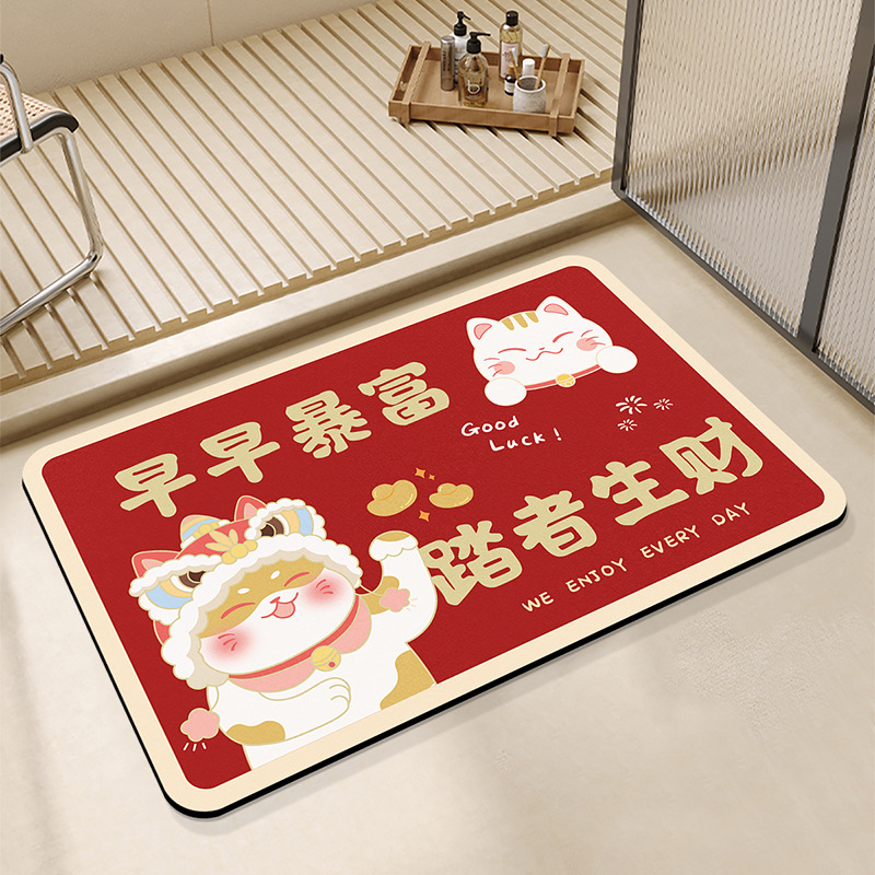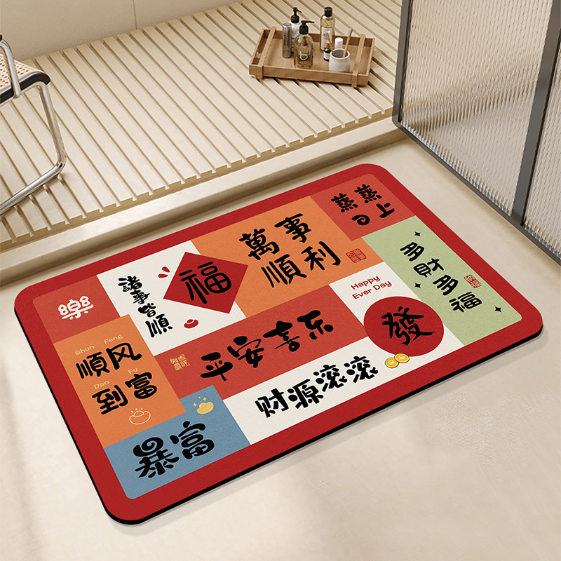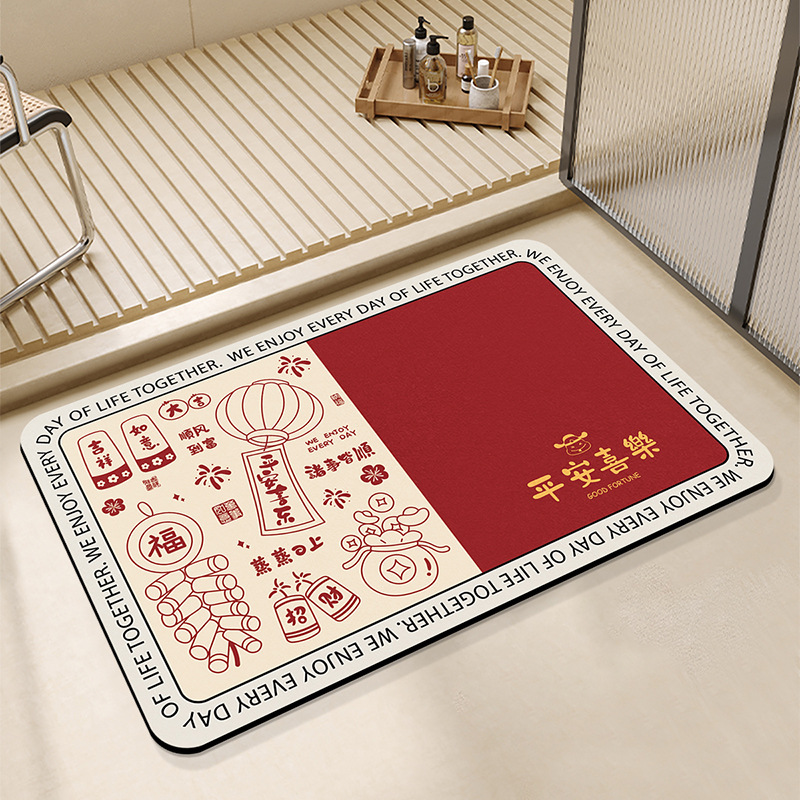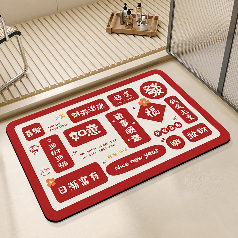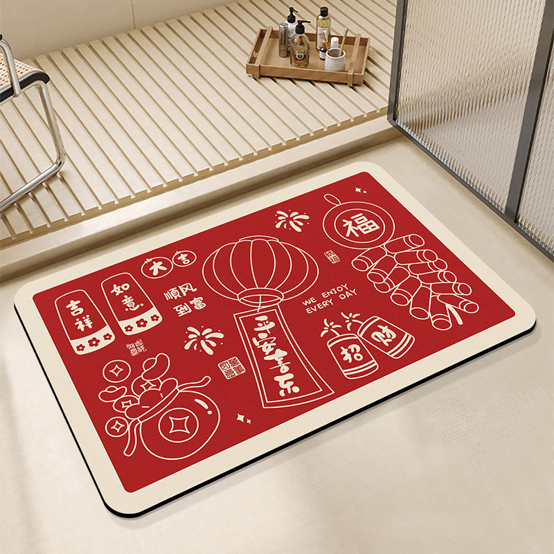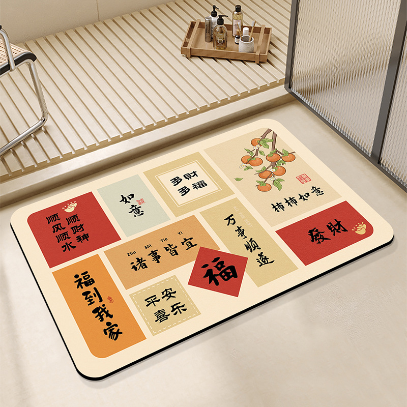 규조토 진흙 새로운 중국 스타일 축제 욕실 미끄럼 방지 매트 가정용 싱크대 흡수성 및 먼지 방지 바닥 매트 입구 문 매트
