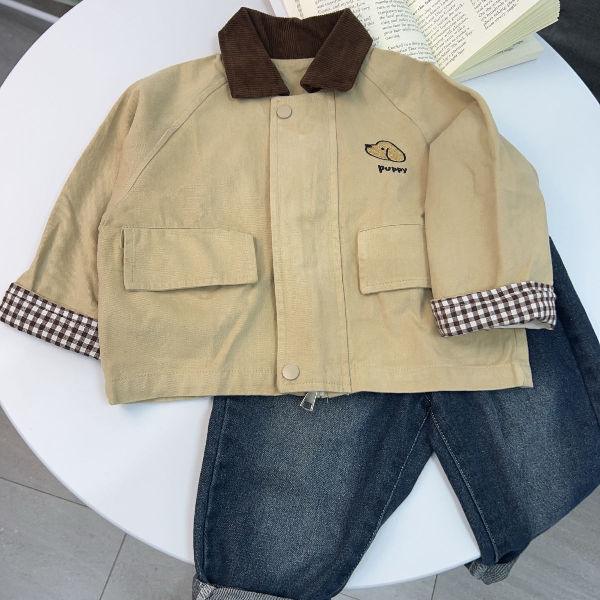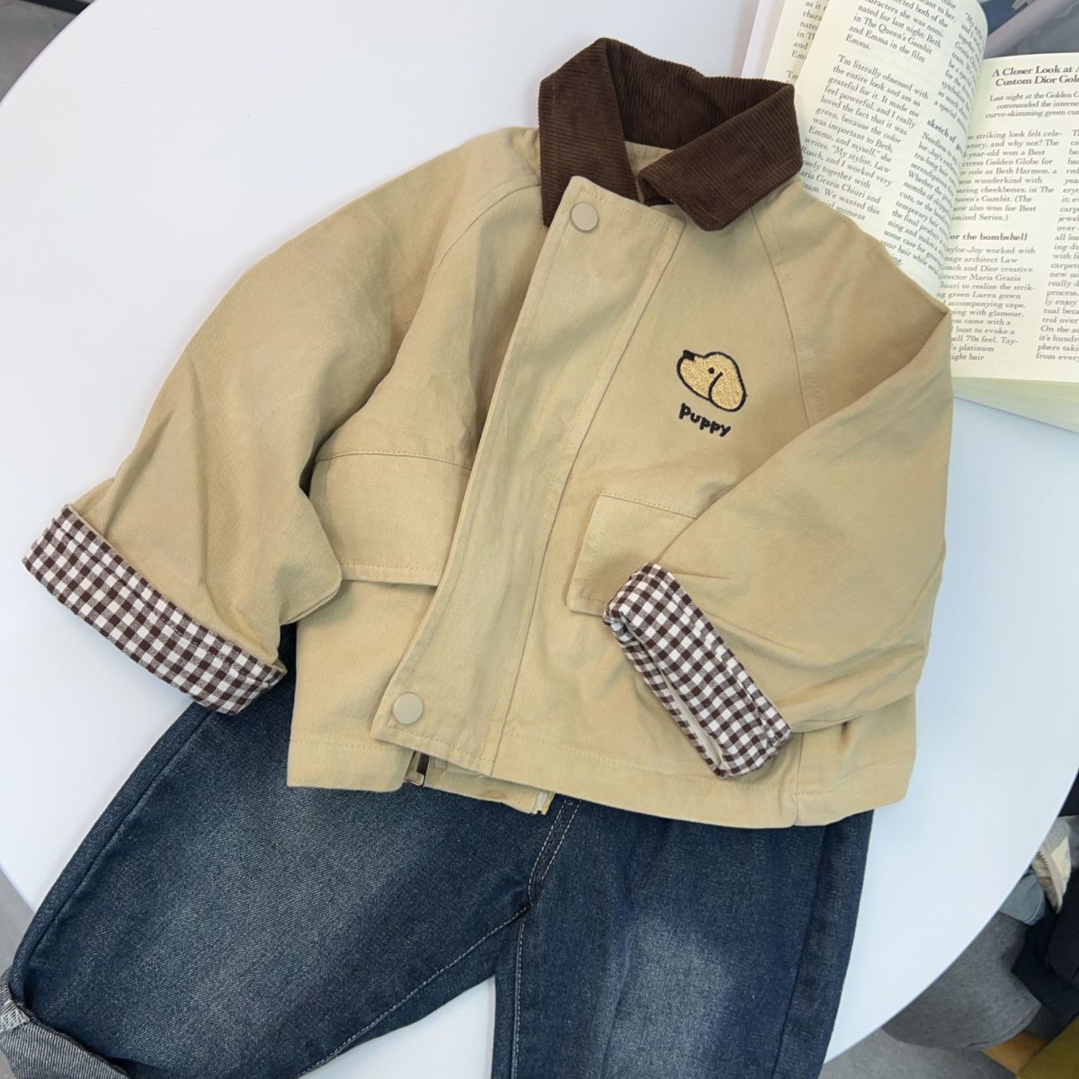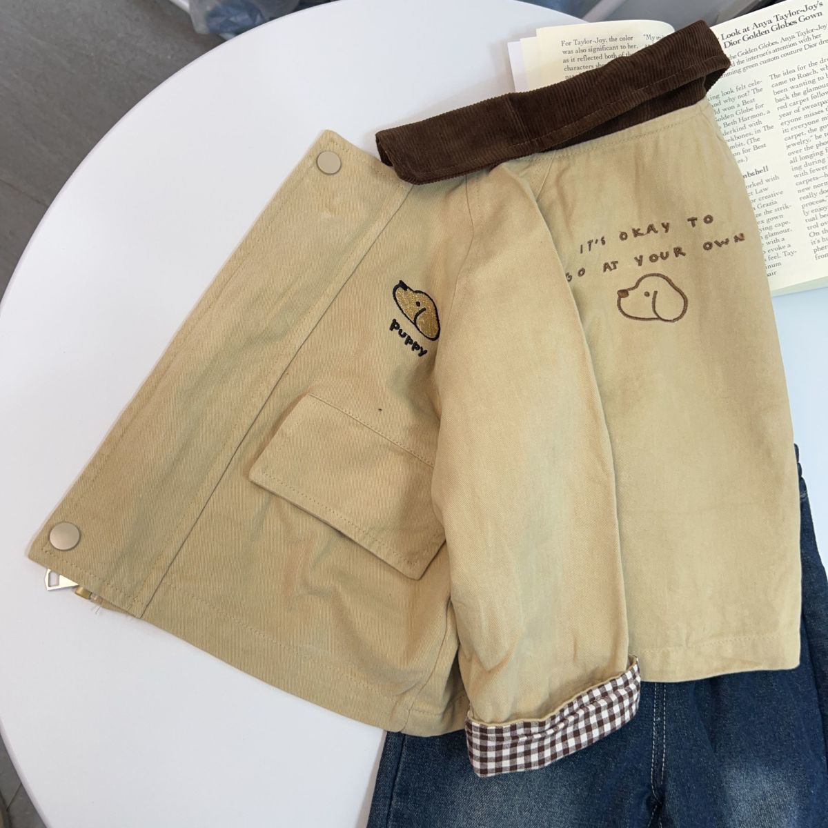소년 코트 봄, 가을 2025 새로운 잘 생긴 소년 캐주얼 대비 색 옷깃 윈드 브레이커 베이비 자켓 탑 유행스토어 가기