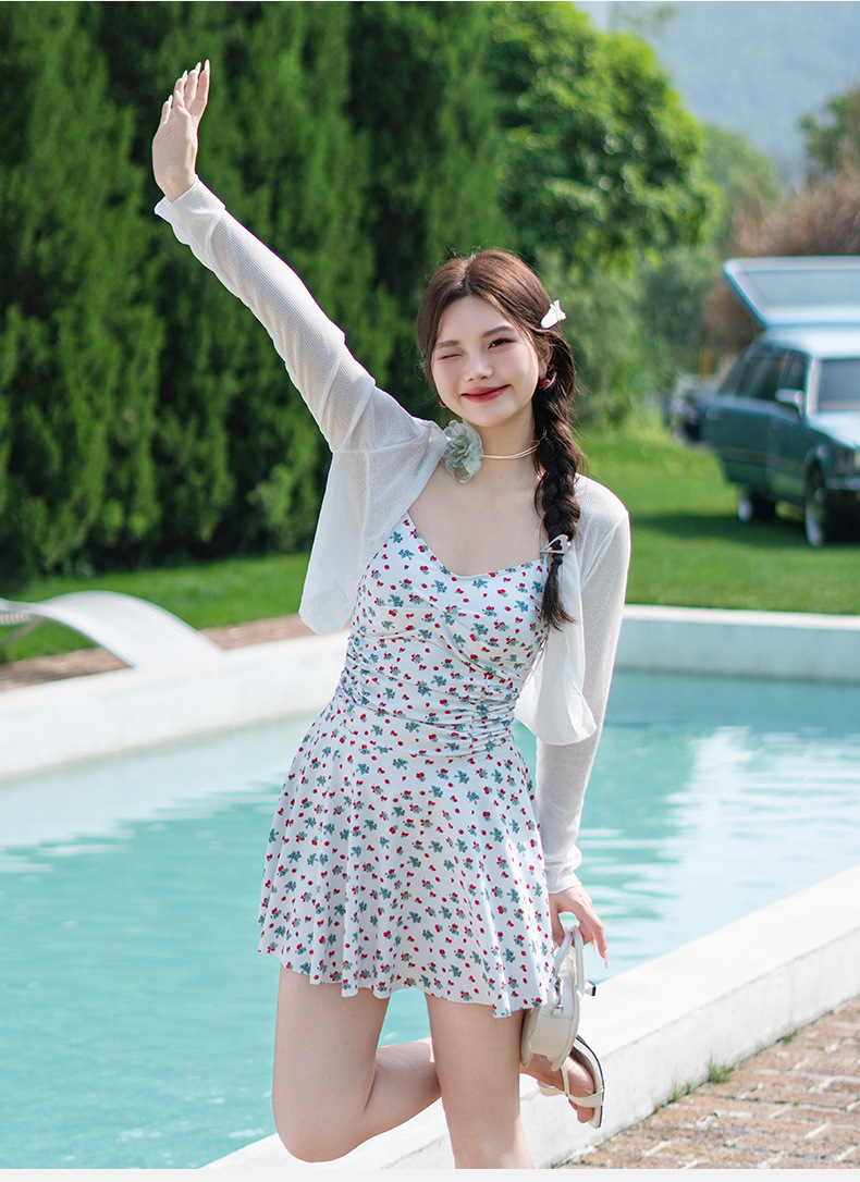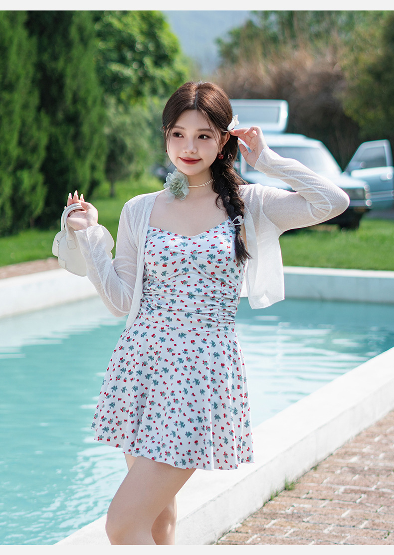 여성용 수영복 플러스 사이즈 뚱뚱한 mm 100kg 원피스 스커트 스타일 배 커버 하이 엔드 블라우스 투피스 온천 수영복