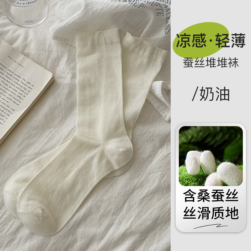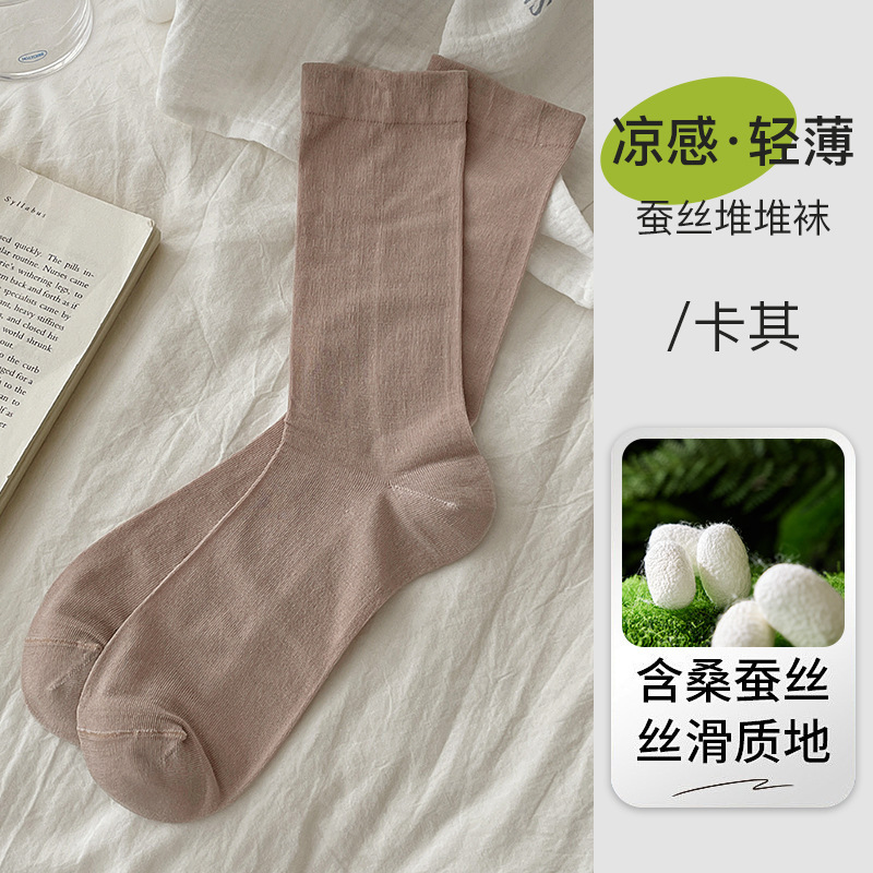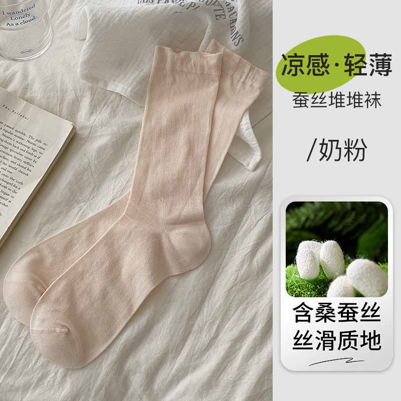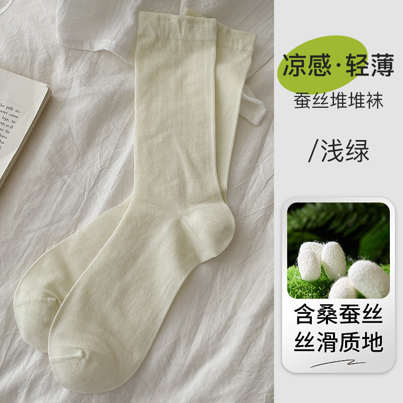여름 초박형 멀버리 실크 산후 양말, 단색 중간 튜브, 편안하고 통기성이 뛰어난 뼈없는 양말, 캐주얼하고 다재다능한 양말스토어 가기