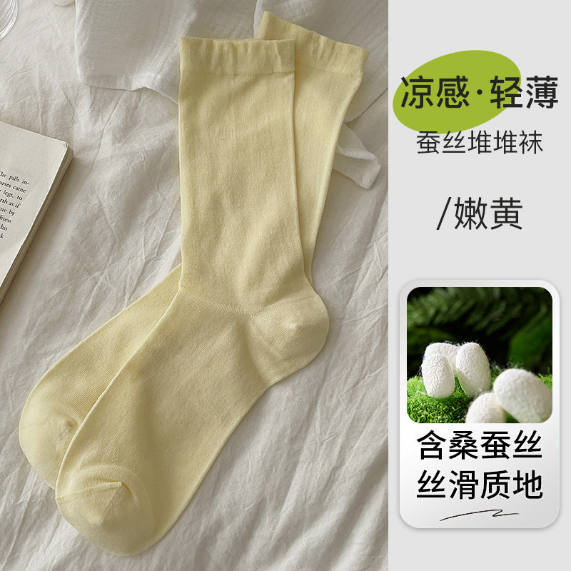 여름 초박형 멀버리 실크 산후 양말, 단색 중간 튜브, 편안하고 통기성이 뛰어난 뼈없는 양말, 캐주얼하고 다재다능한 양말