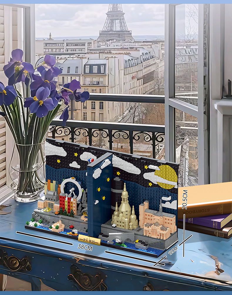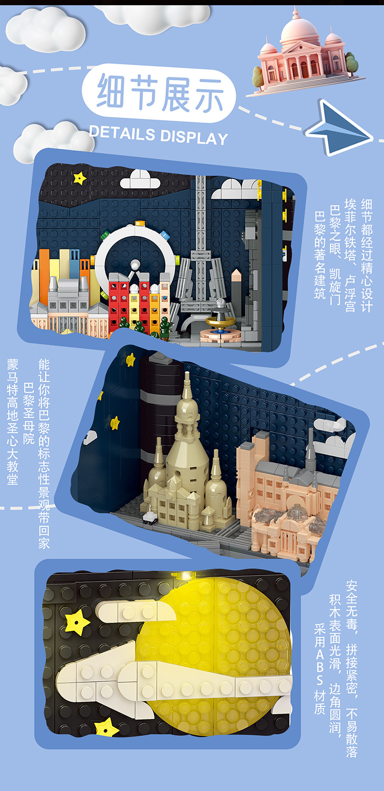 Moke 프랑스 파리 도시 스트리트 뷰 장식품 작은 입자 조립 교육 빌딩 블록 조립 장난감 028009