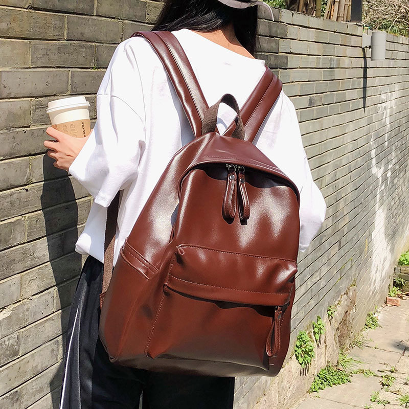 Schoolbag 여성 2023 새로운 한국어 버전 하라주쿠 중고등학교 대학생 간단한 패션 다목적 배낭 남성 pu 부드러운 가죽