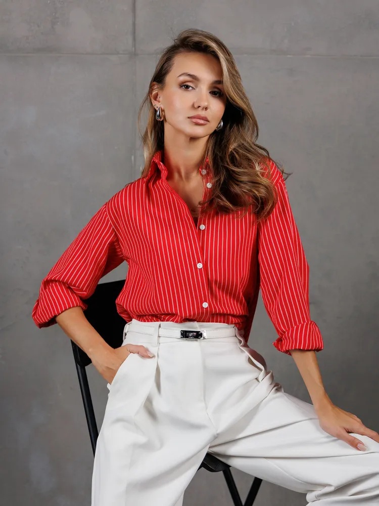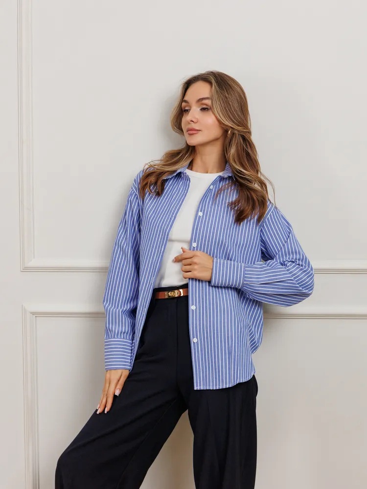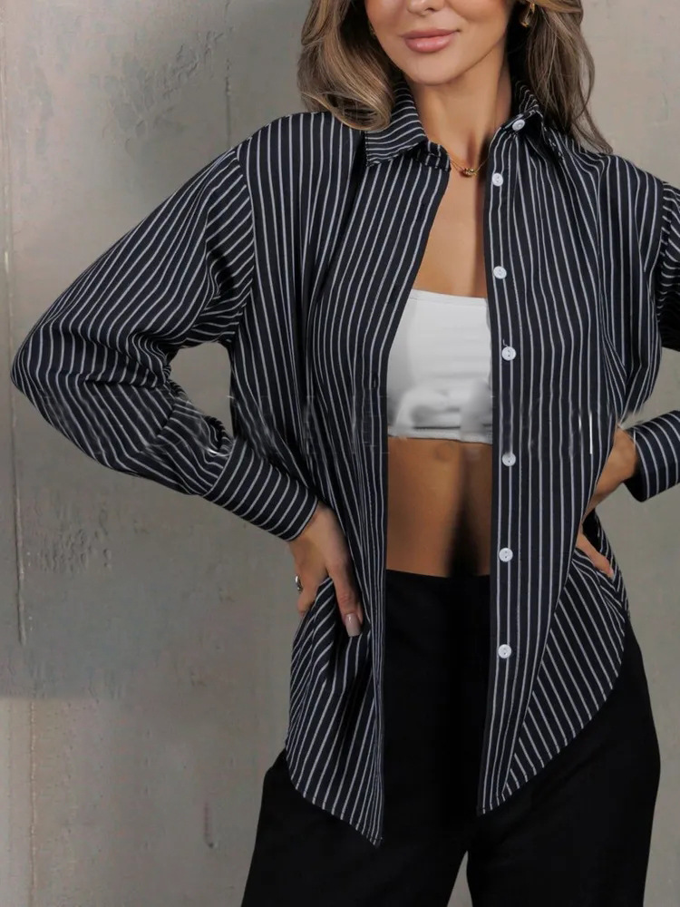 유럽 및 미국 무역 여성복 2026 신상 루즈핏 대형 사이즈 스트라이프 여성 셔츠 작업복 셔츠 캐주얼 긴팔 셔츠스토어 가기