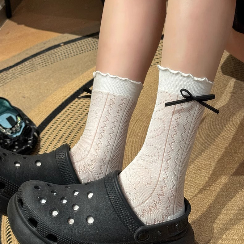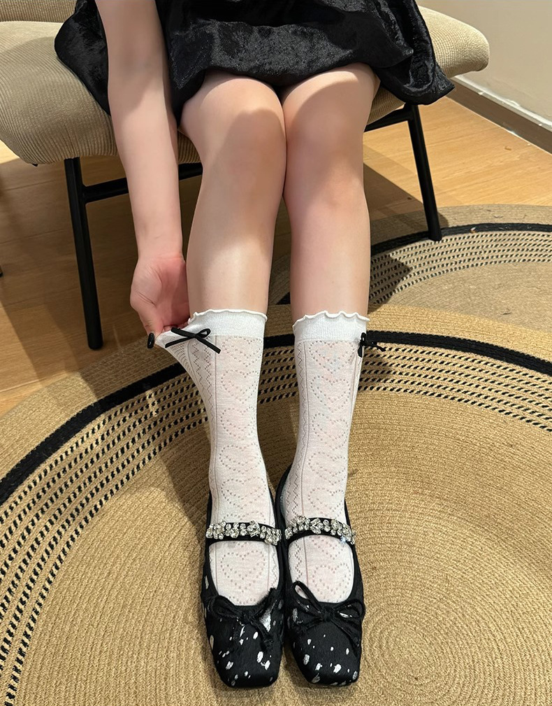 "도파민의 행복" 여름 메쉬 얇은 캔디 컬러 리본 귀 레이스 발레는 쌓을 수 있습니다
