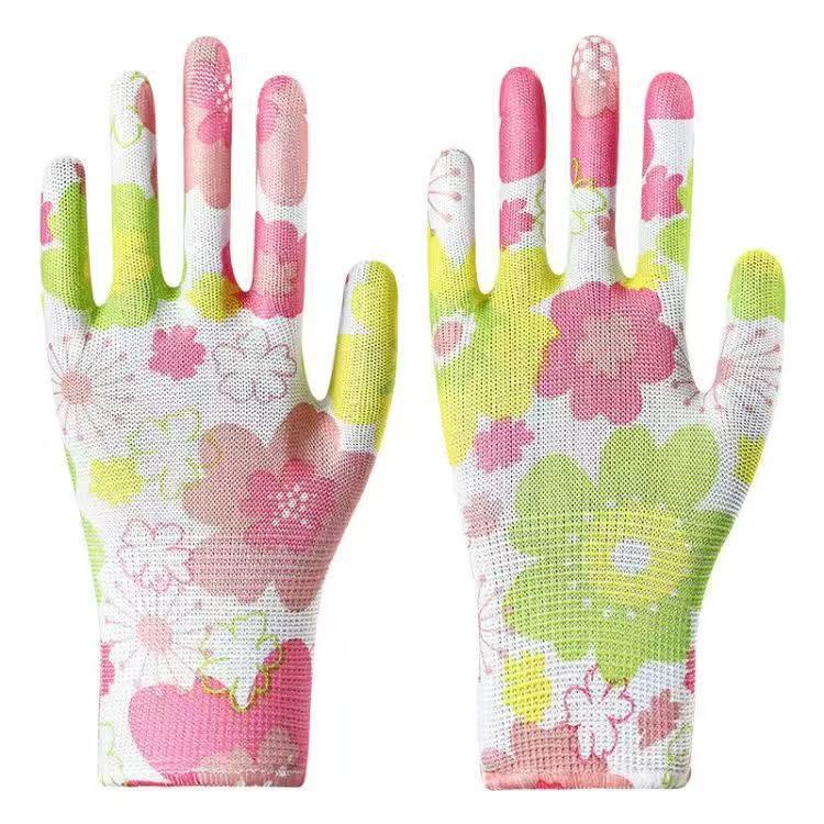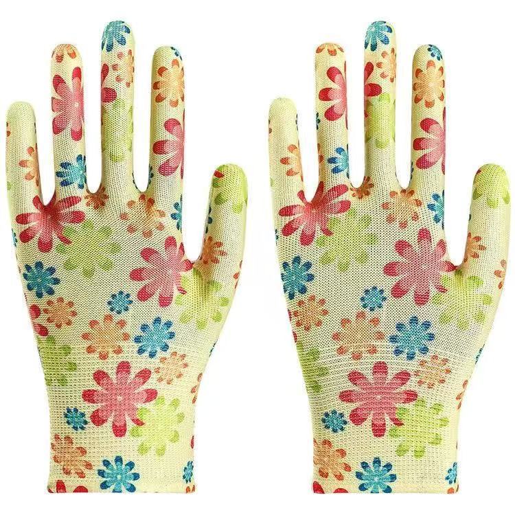 인쇄 나일론 노동 보호 장갑, 가볍고 통기성이 뛰어난 코팅된 손바닥 보호 장갑, 내마모성 원예 픽킹 장갑 도매