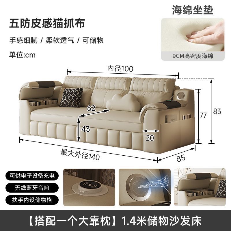 거실 소파 베드 다기능 일체형 접이식 및 보관 가능 고양이 발톱 방지 패브릭 홈 거실 소형 아파트