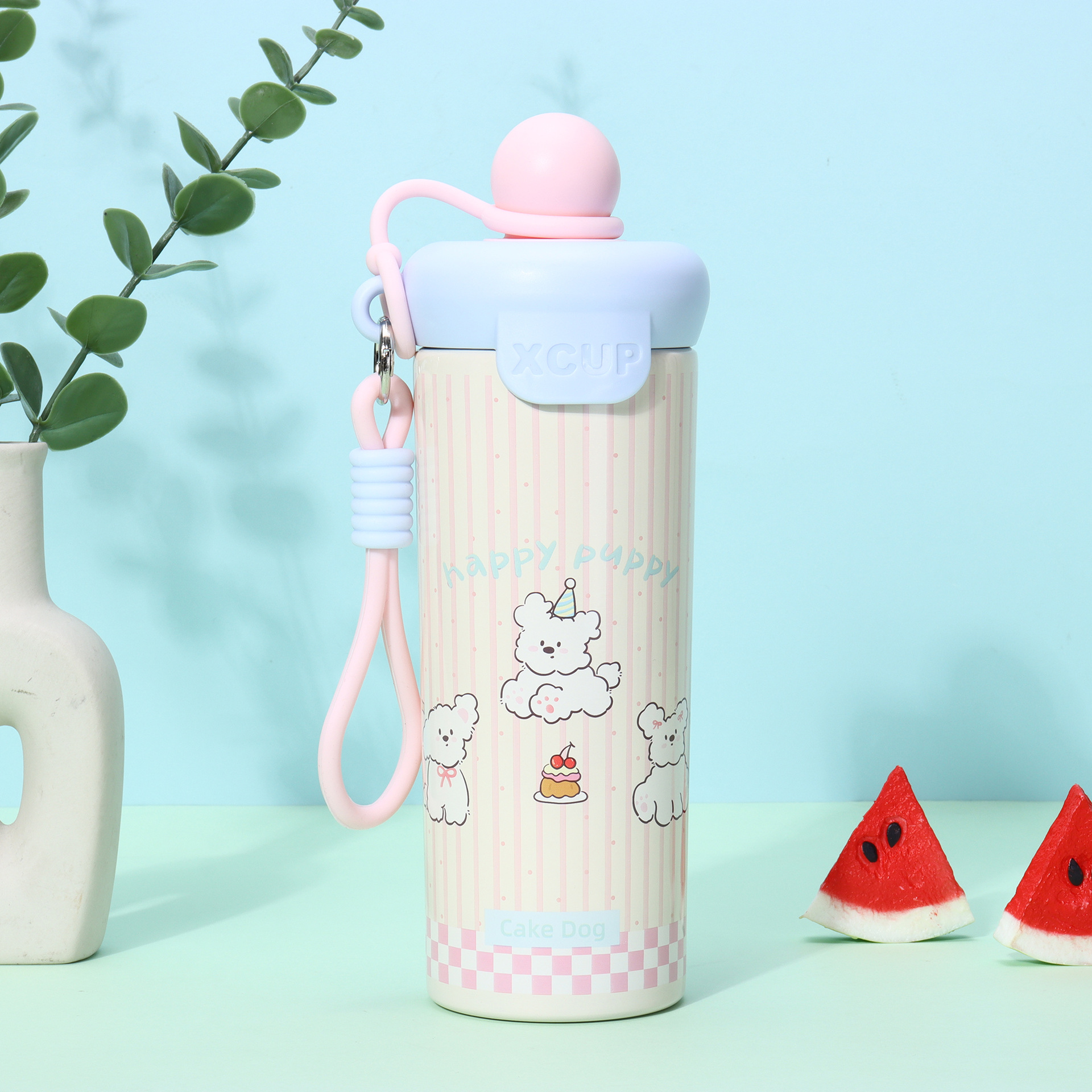 고급스러운 316 스테인리스 플로팅 볼 보온병, 새로운 만화 꽃차 플라스틱 빨대컵, 끈이 달린 물컵 도매