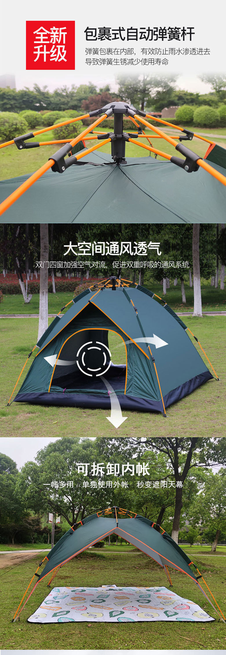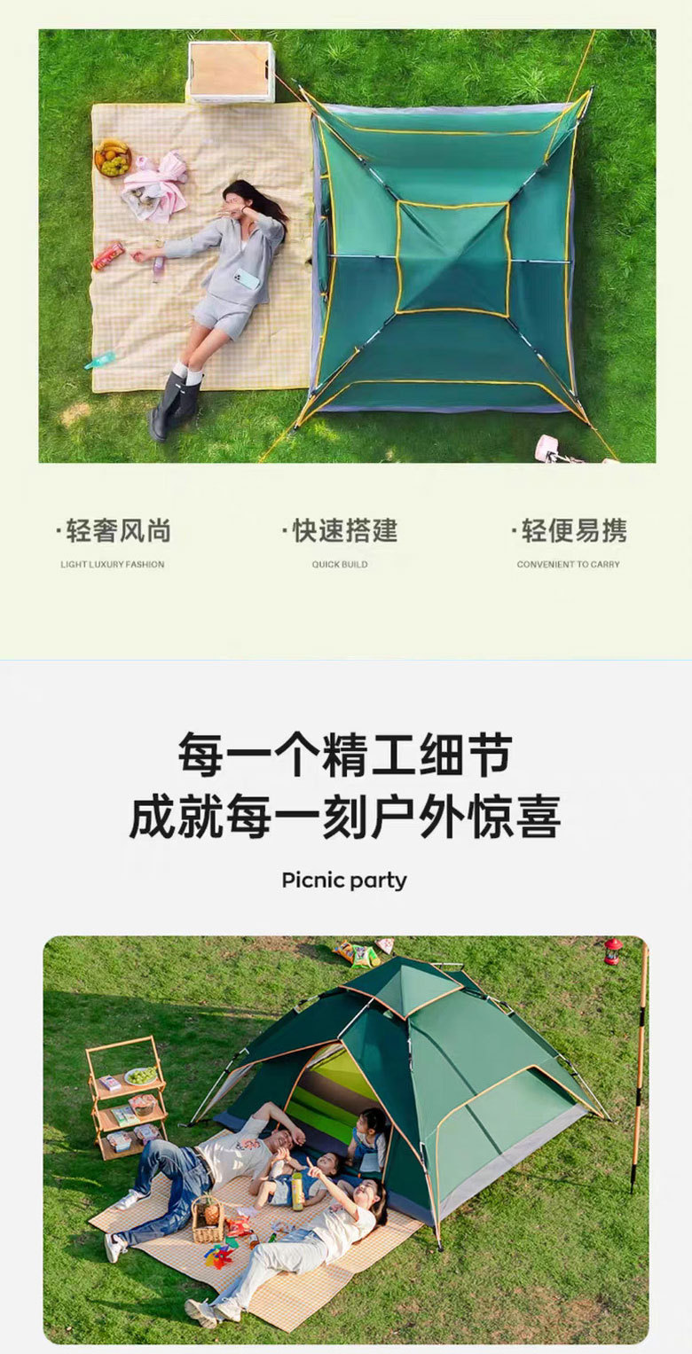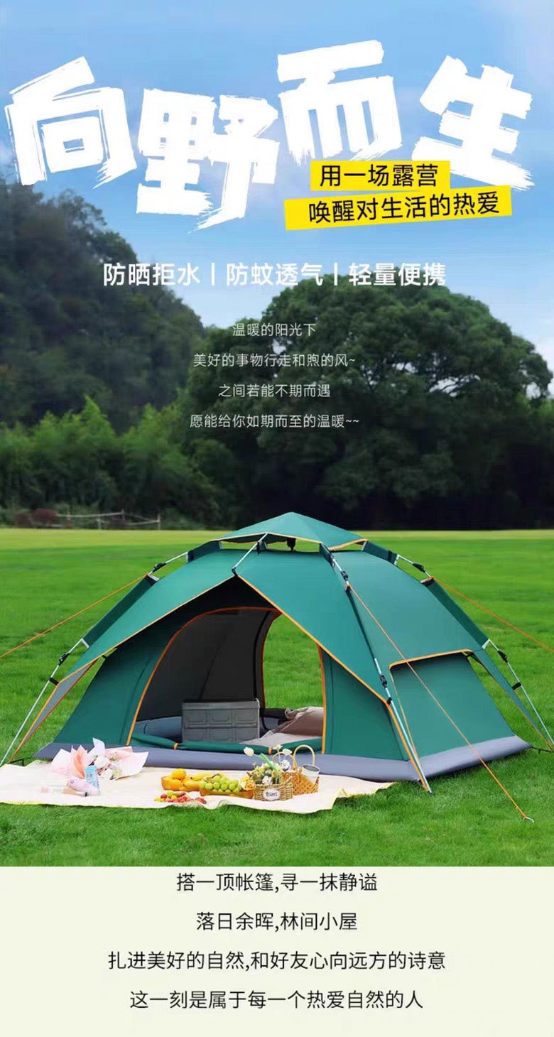 텐트 자동 캠핑 텐트, 3-5인용, 방풍, 폭우 방지, 휴대용, 설치 불필요, 빠른 설치, 캠핑용, 진정한 이중층스토어 가기