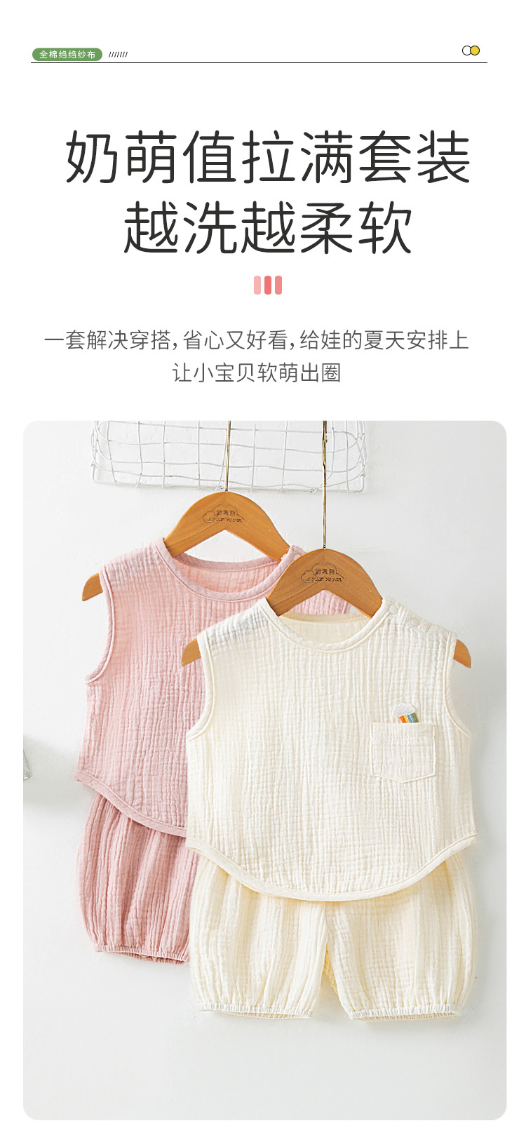 아기 스플릿 슈트 얇은 유아 여름 옷 순면 거즈 아기 여름 조끼 반바지 잠옷스토어 가기